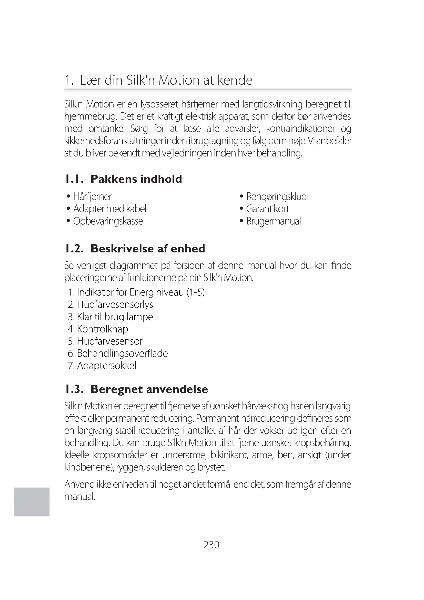 - Sikkerhed ved brug af Silk'n Motion 231