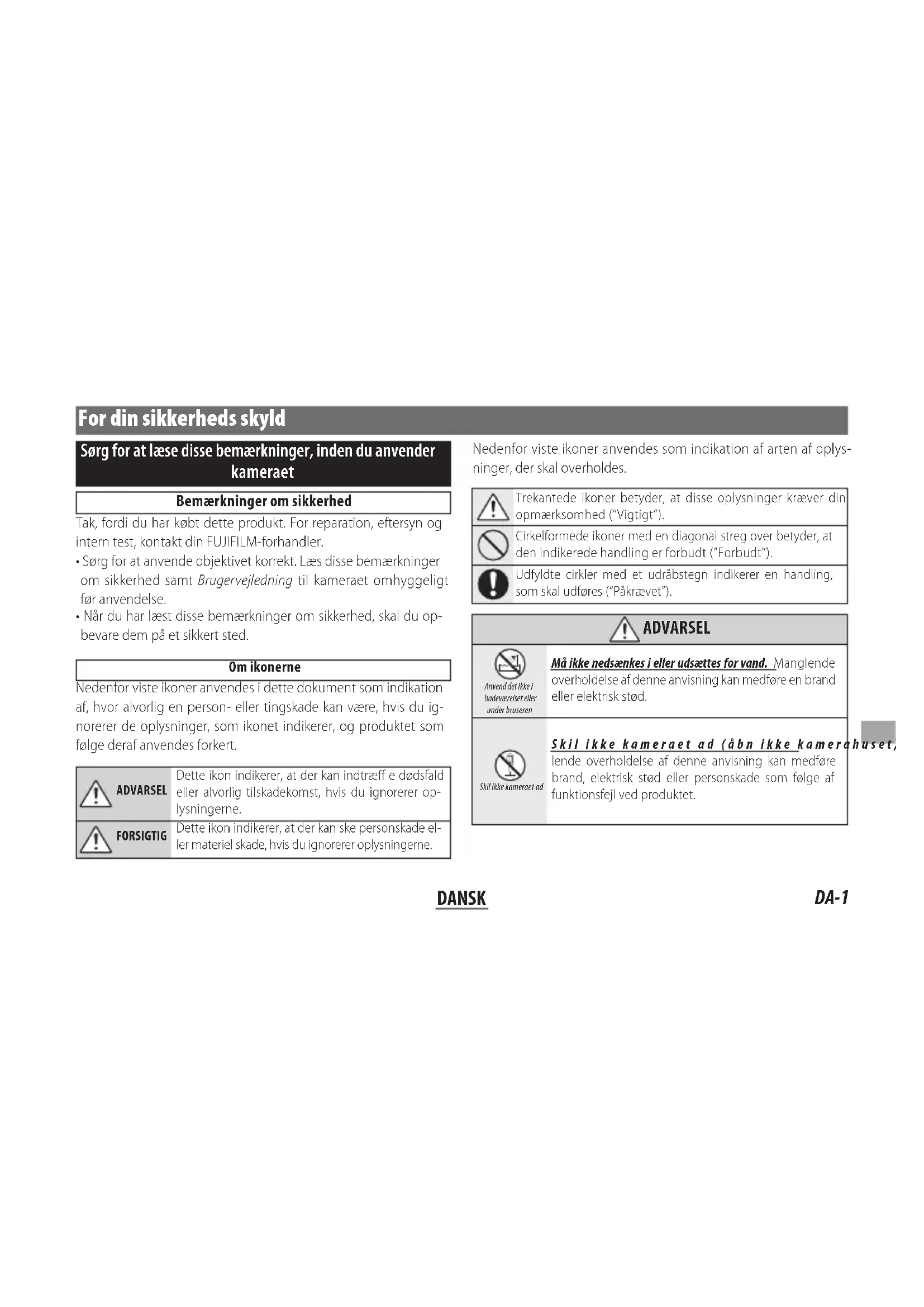 Tak, fordu har kobt dette produit. For reparation, eftersyn og intern test,kontakt din FUJIFILM-forhandler.