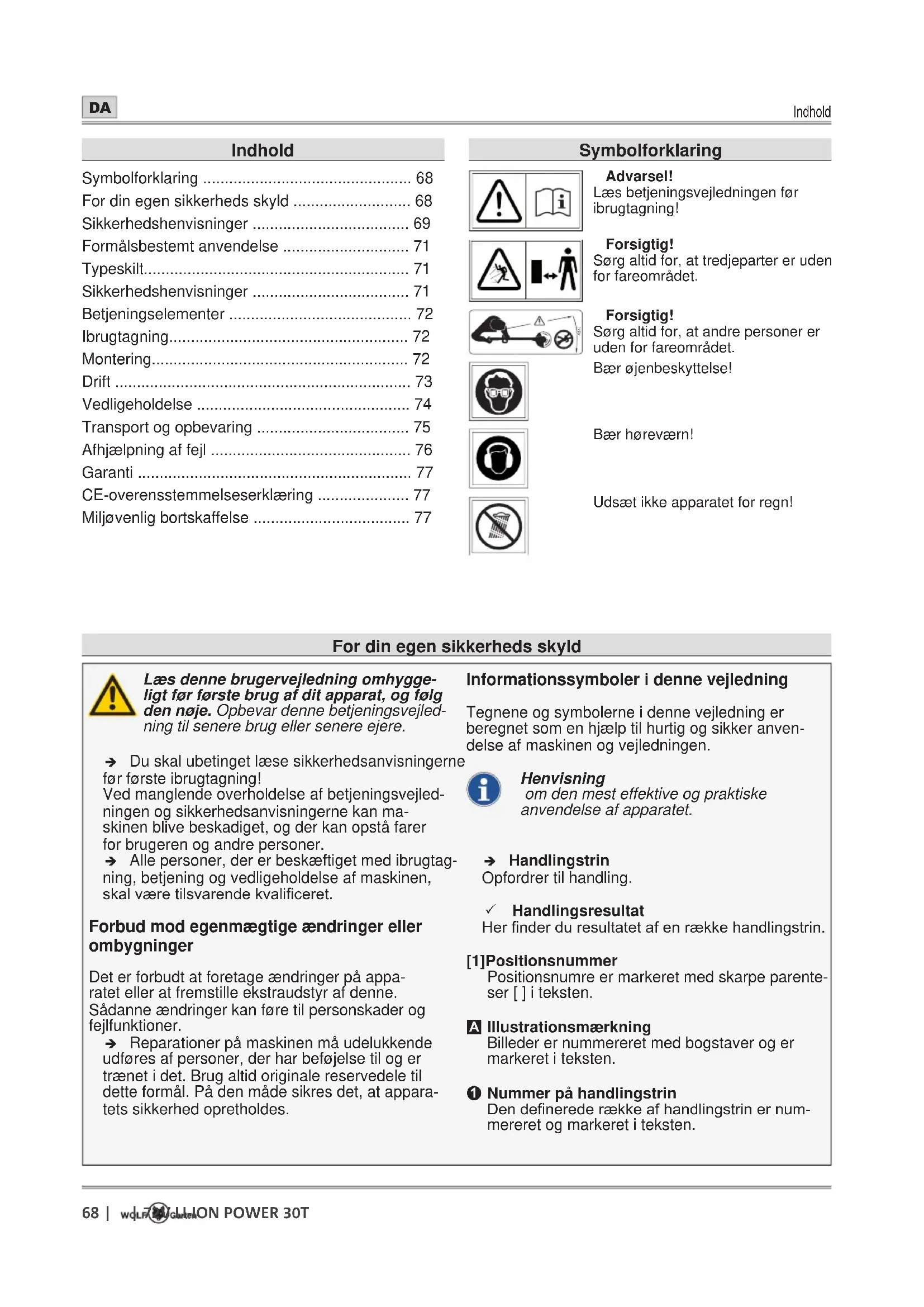 BRUGSANVISNING PWR 30T Wolf Garten