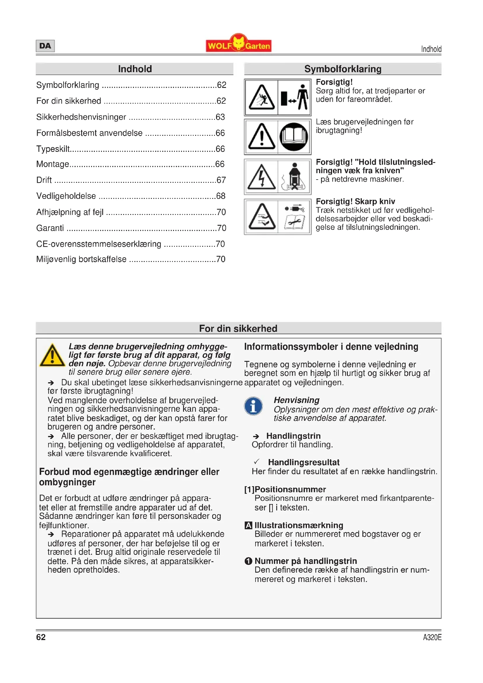 BRUGSANVISNING A 320 E Wolf Garten