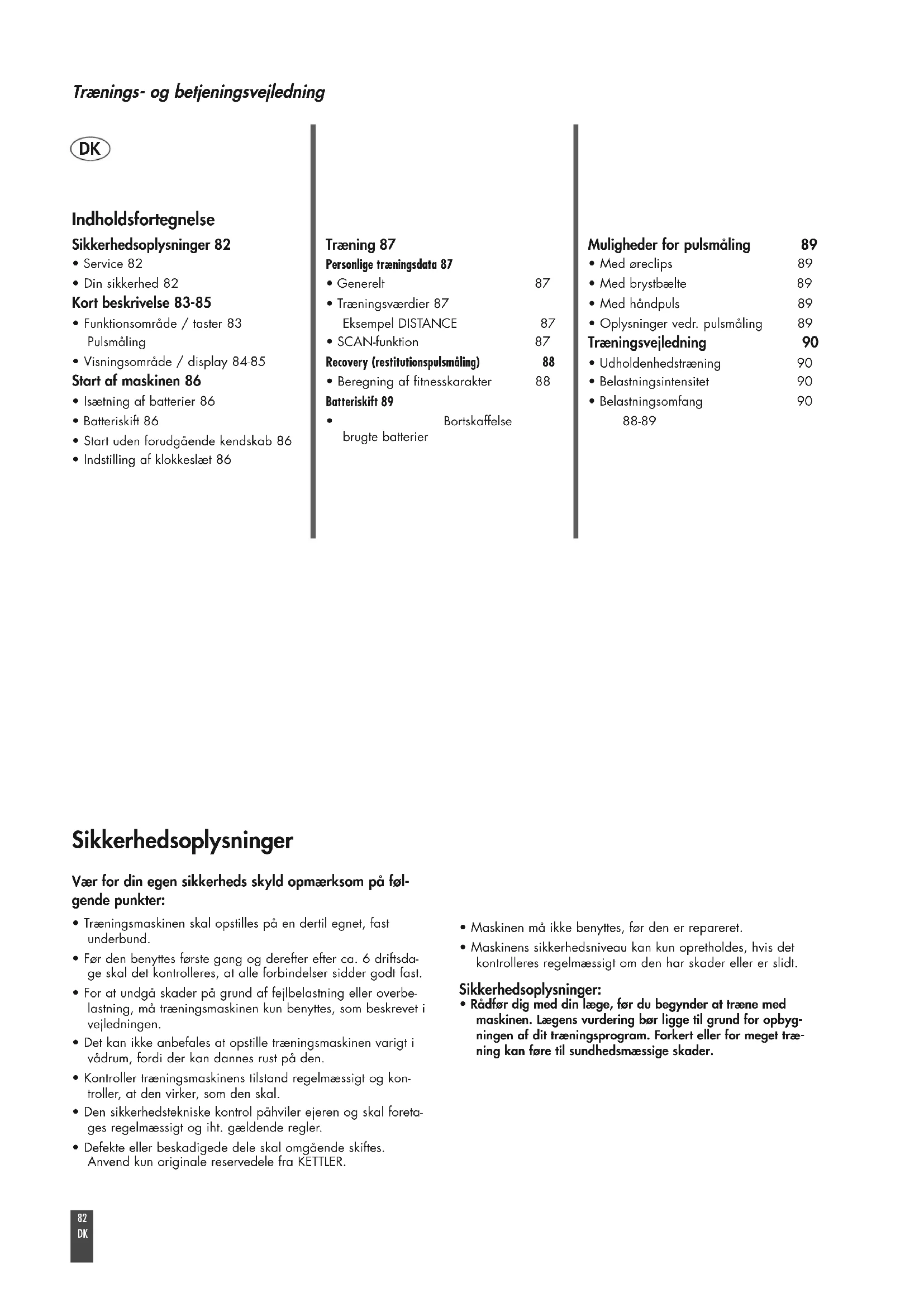 - Oplysninger vedr. pulsmåling 89 Træningsvejledning 90