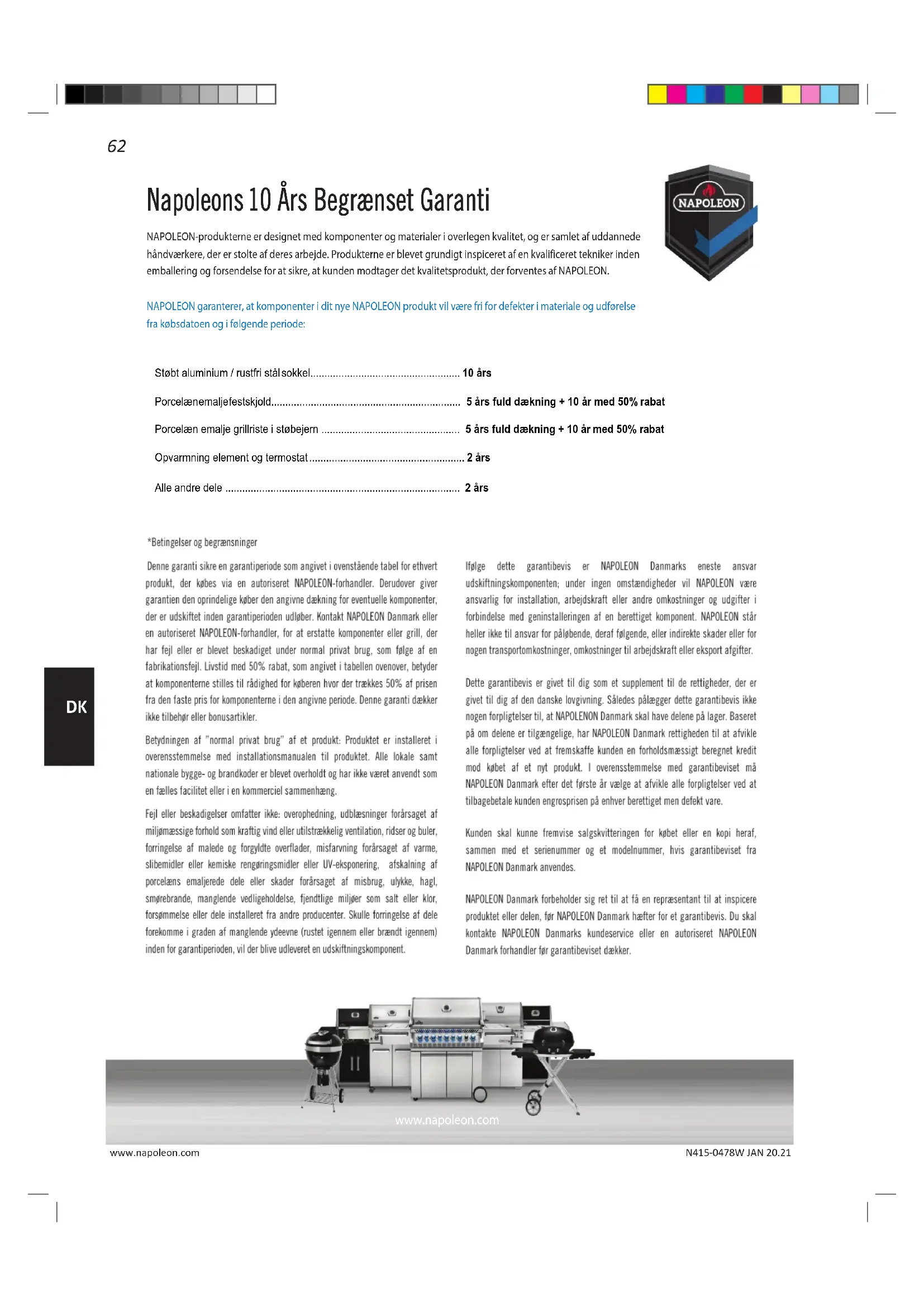 - års fuld dækning + 10 år med 50% rabat Alle andre dele års63 www.napoleon.com p. 2