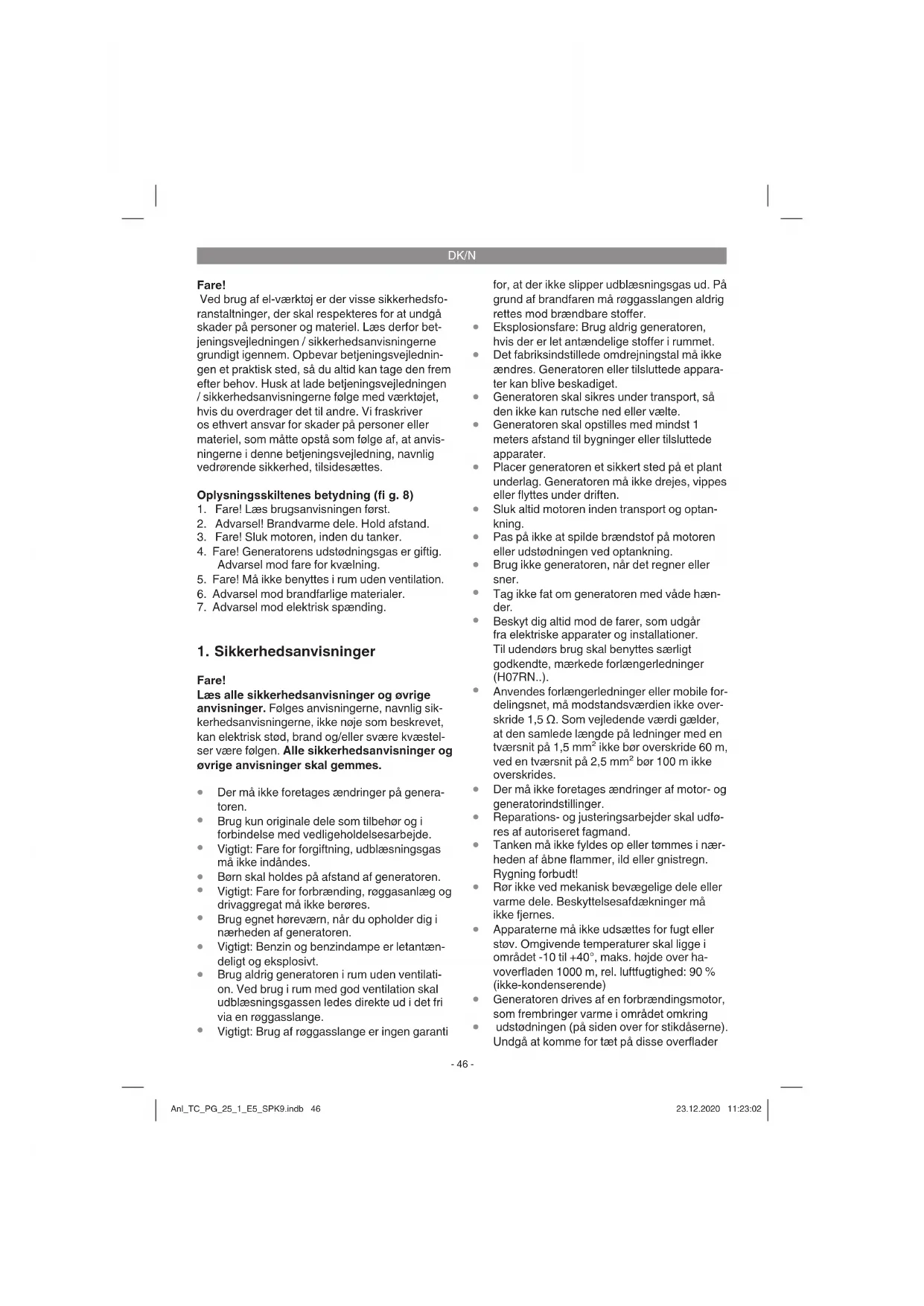 udstødningen (på siden over for stikdåserne). Undgå at komme for tæt på disse overflader Anl_TC_PG_25_1_E5_SPK9.indb 46Anl_TC_PG_25_1_E5_SPK9.indb 46 23.12.2020 11:23:0223.12.2020 11:23:02DK/N