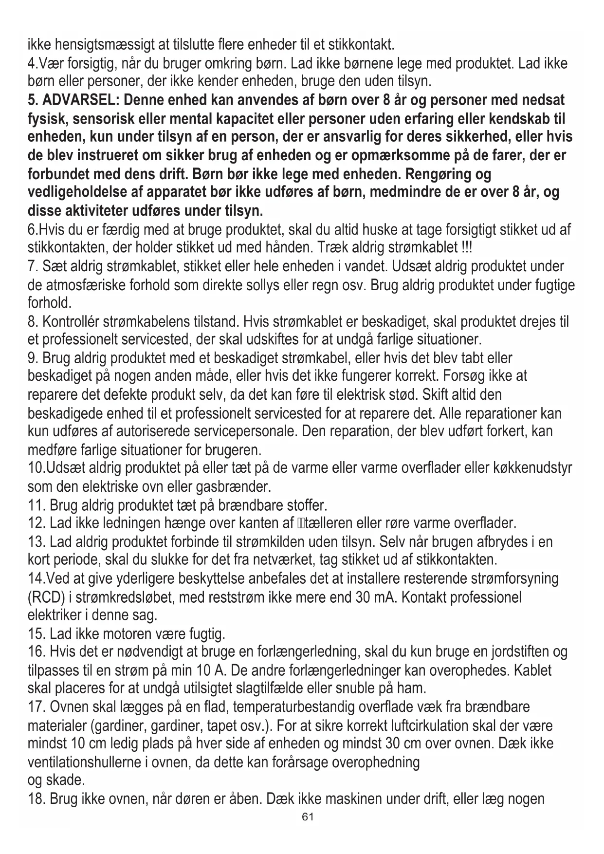 5. ADVARSEL: Denne enhed kan anvendes af børn over 8 år og personer med nedsat