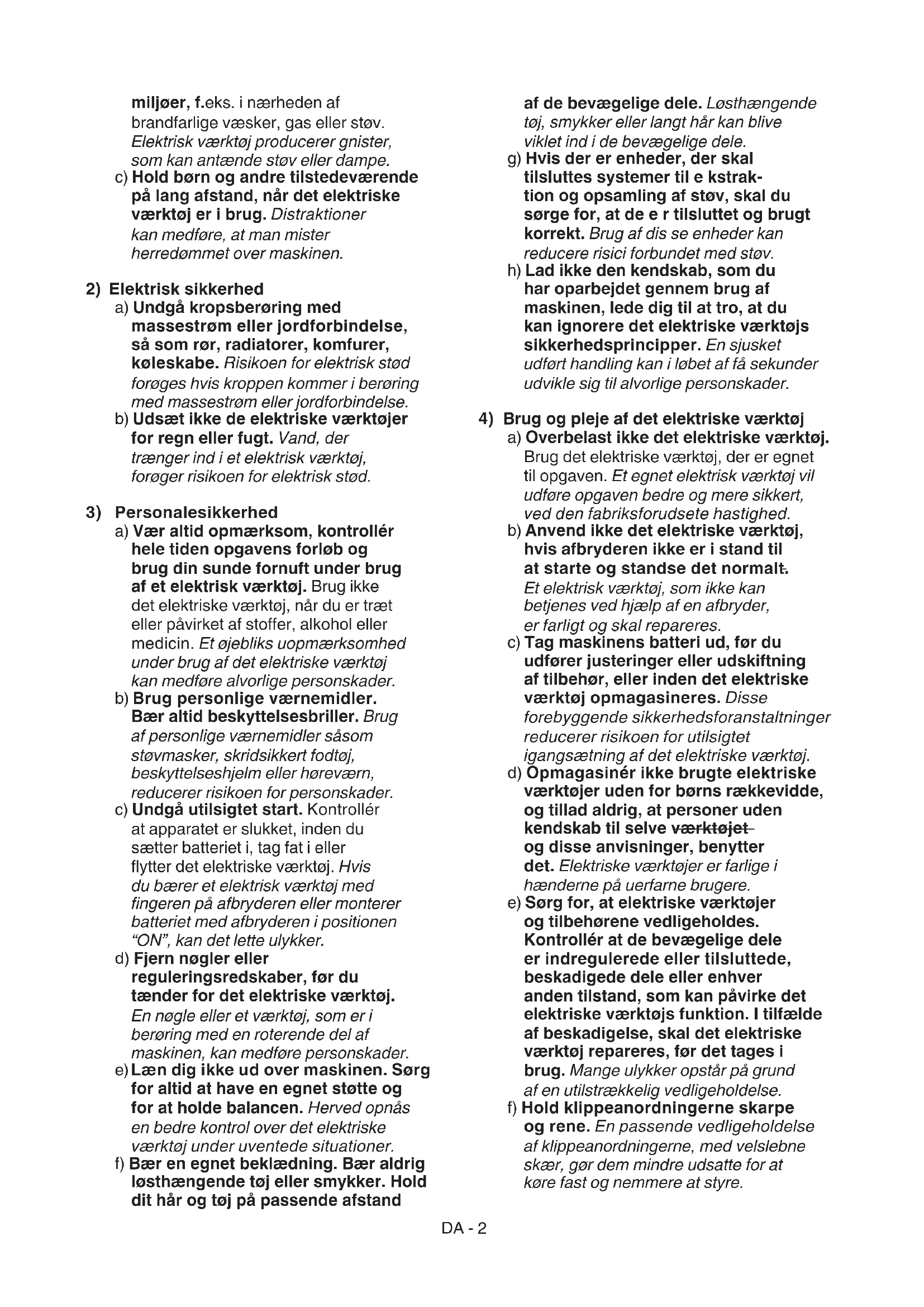 2.1 GENERELLE SIKKERHEDSADVARSLER FOR ELEKTRISK VÄERKTÖJ
