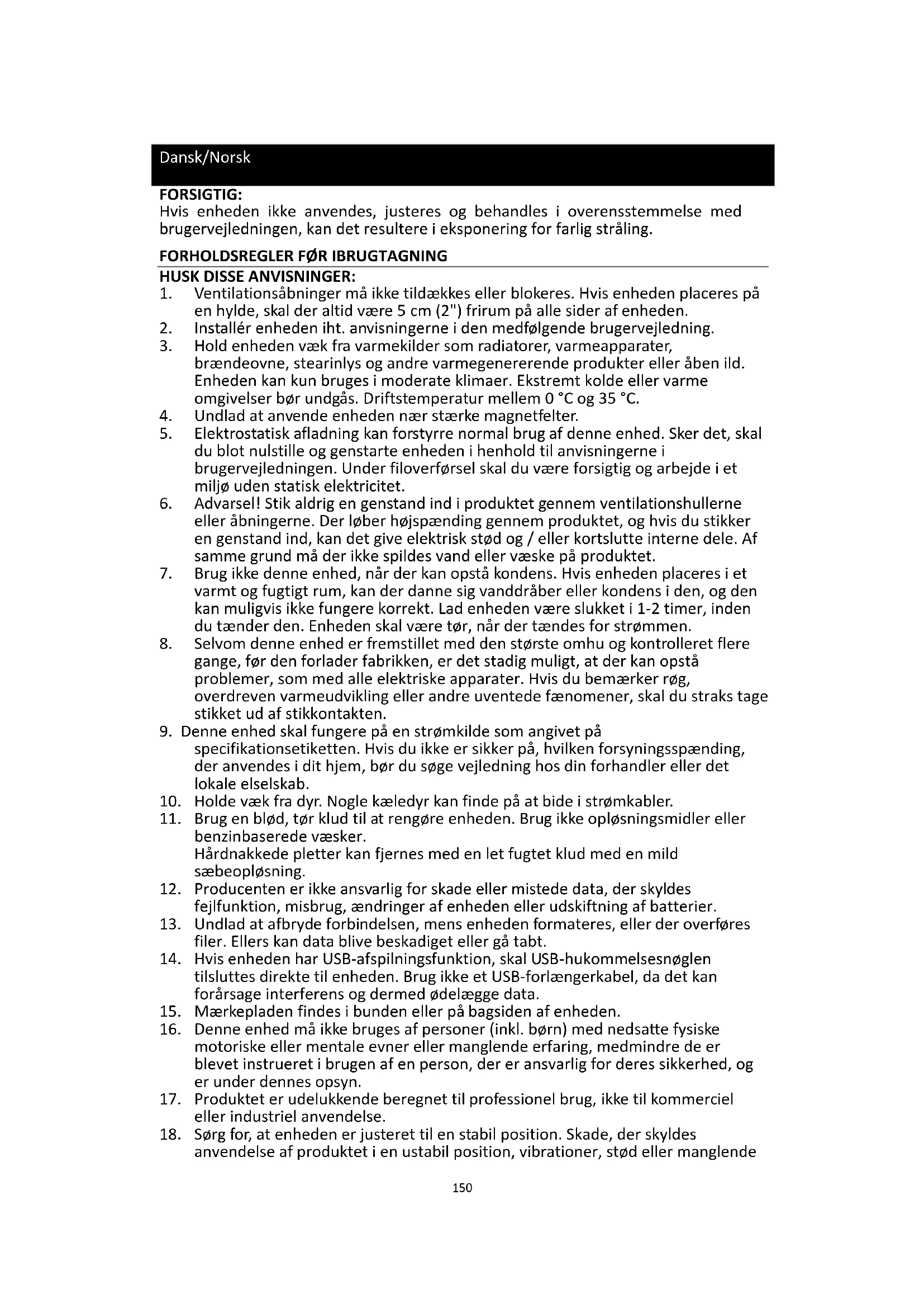 16. Denne enhed må ikke bruges af personer (inkl. børn) med nedsatte fysiske