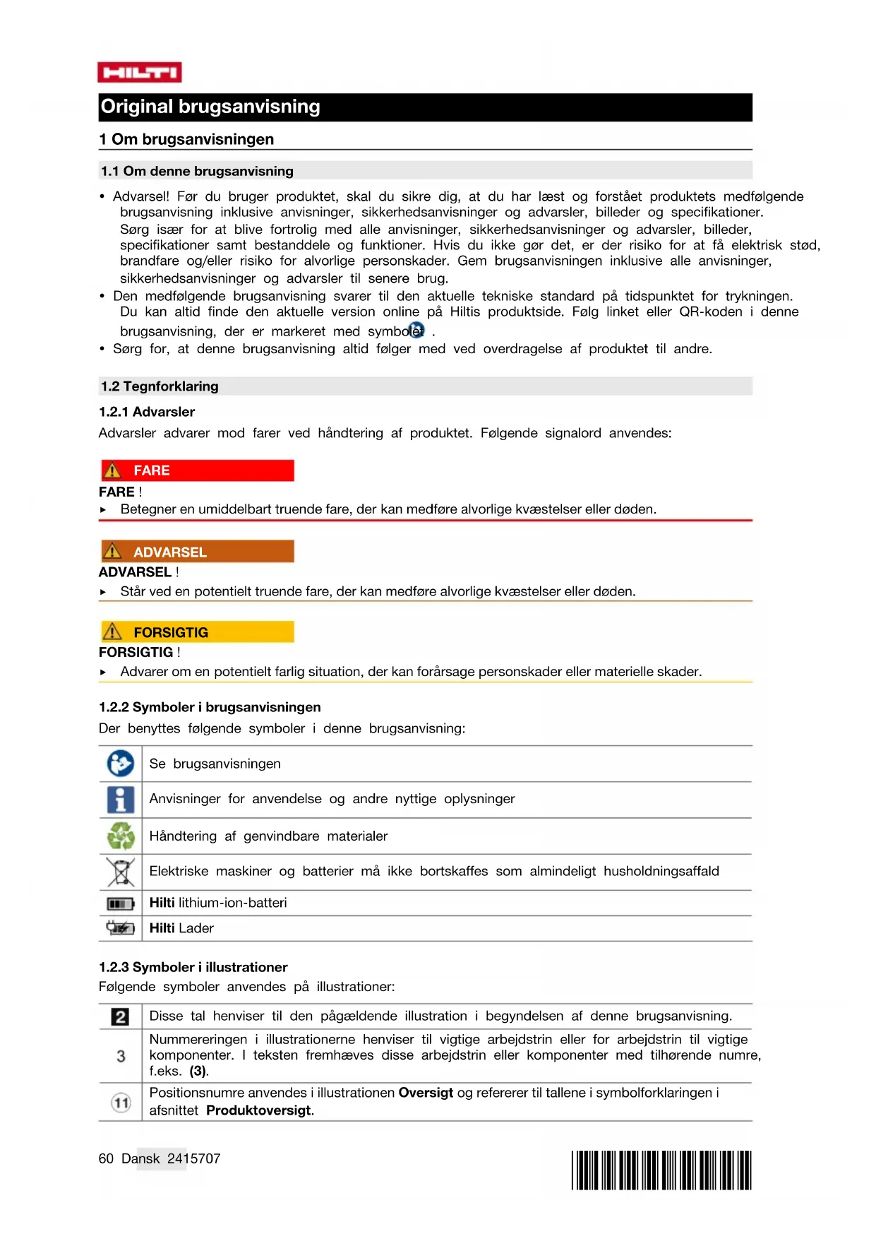 1.2.2 Symboler i brugsanvisningen