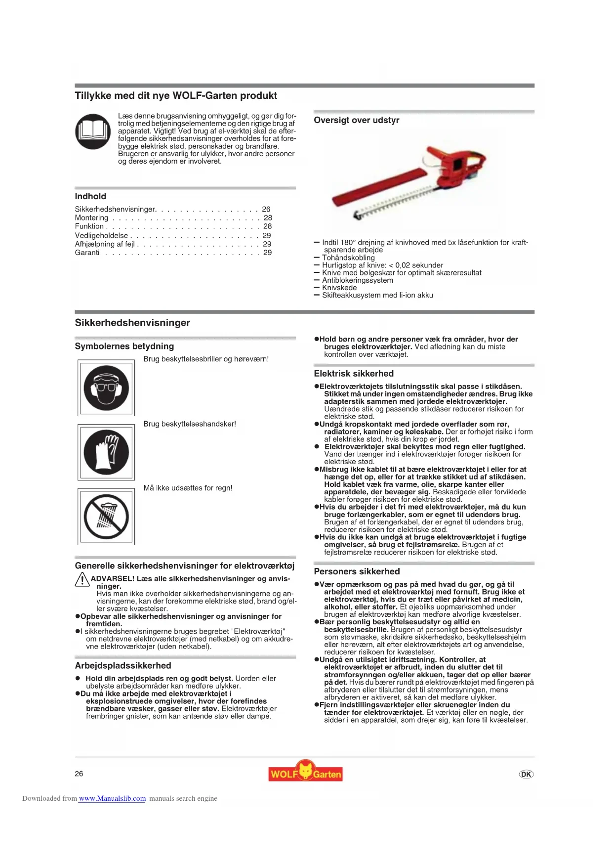 - Tillykke med dit nye WOLF-Garten produkt Indhold Sikkerhedshenvisninger p. 26