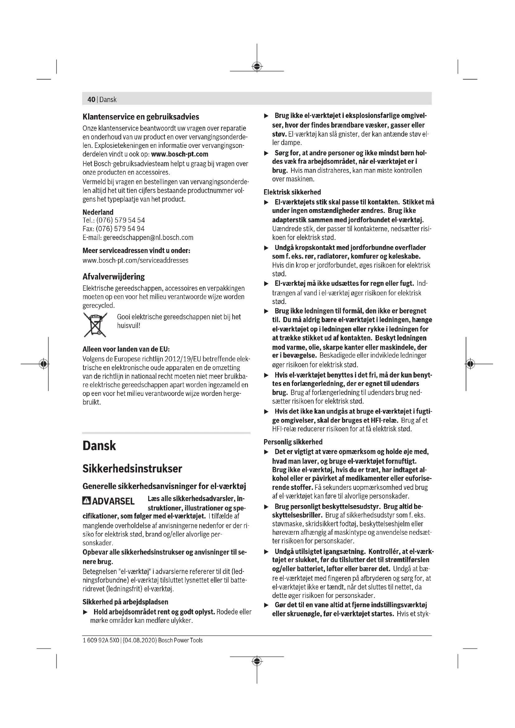 Find enhedens vejledning gratis GBG 6020 Professional BOSCH i PDF-format.