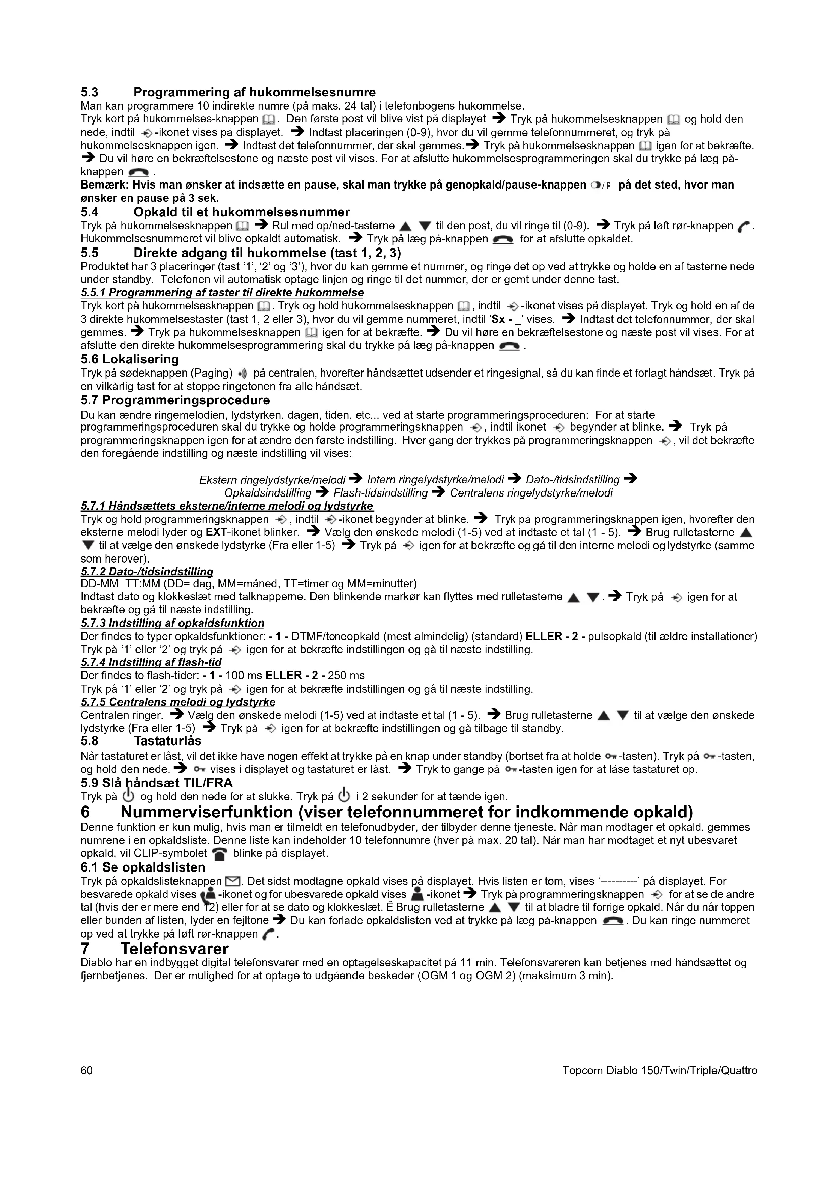 lægge besked.62 Topcom Diablo 150/Twin/Triple/Quattro Bemærk: Hvis der intet bliver sagt inden for 8 sekunder, efter at der er svaret, vil forbindelsen automatisk blive afbrudt.