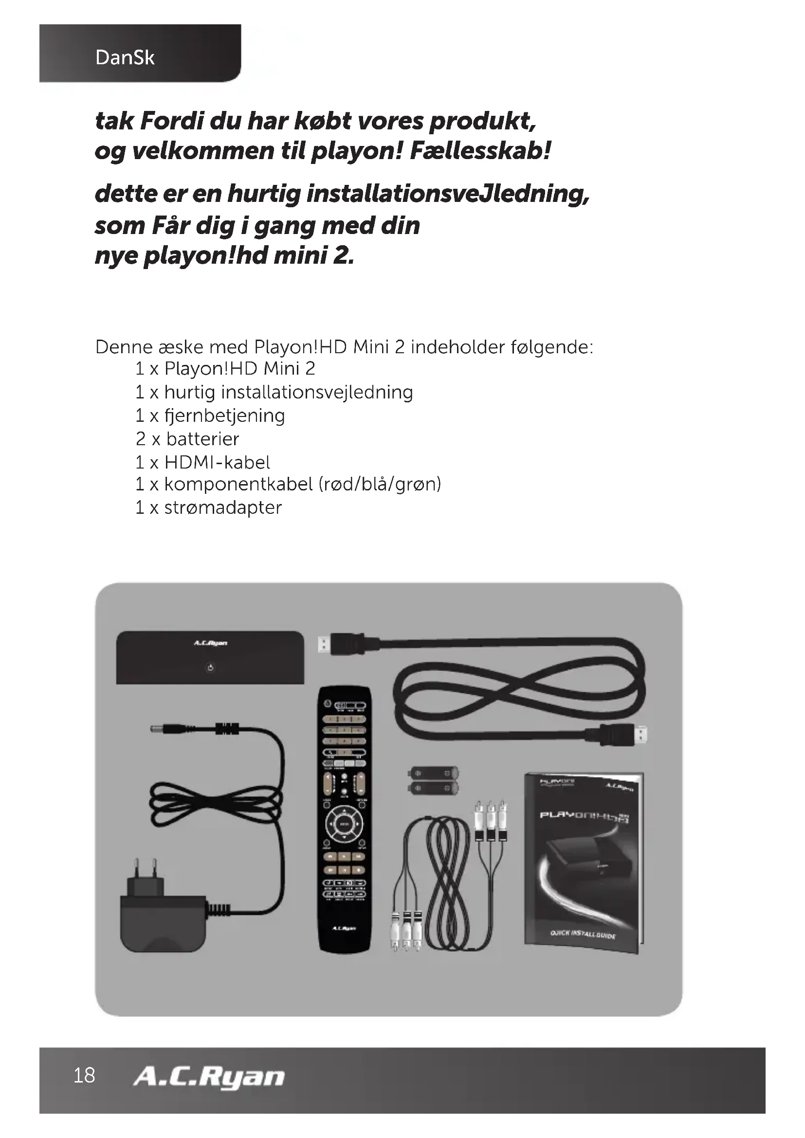BRUGSANVISNING Playon!HD3 Mini ACRPV73800 AC Ryan