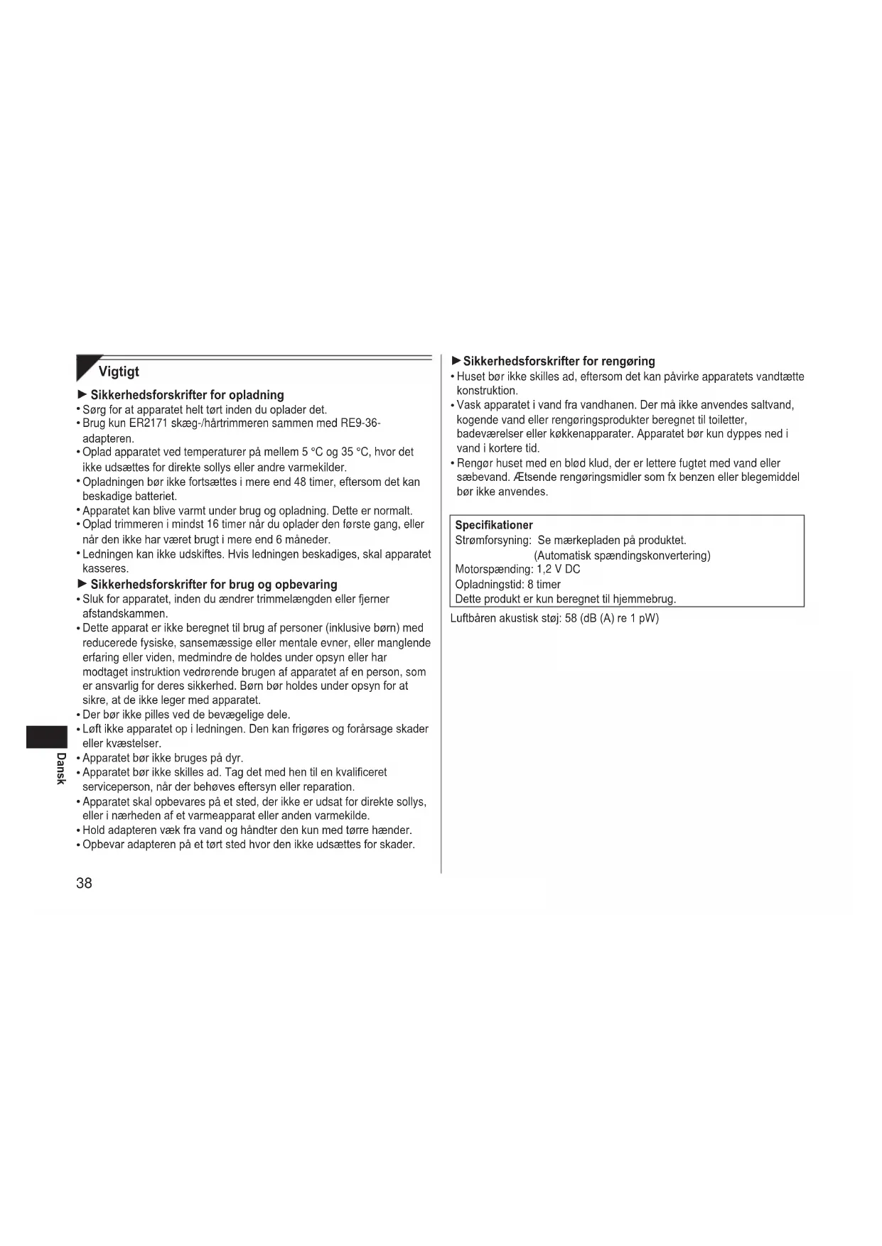 - Oplad trimmeren i mindst 16 timer nár du oplader den forste gang, ellernar den ikke har vaaret brugt i mere end 6 maneder.