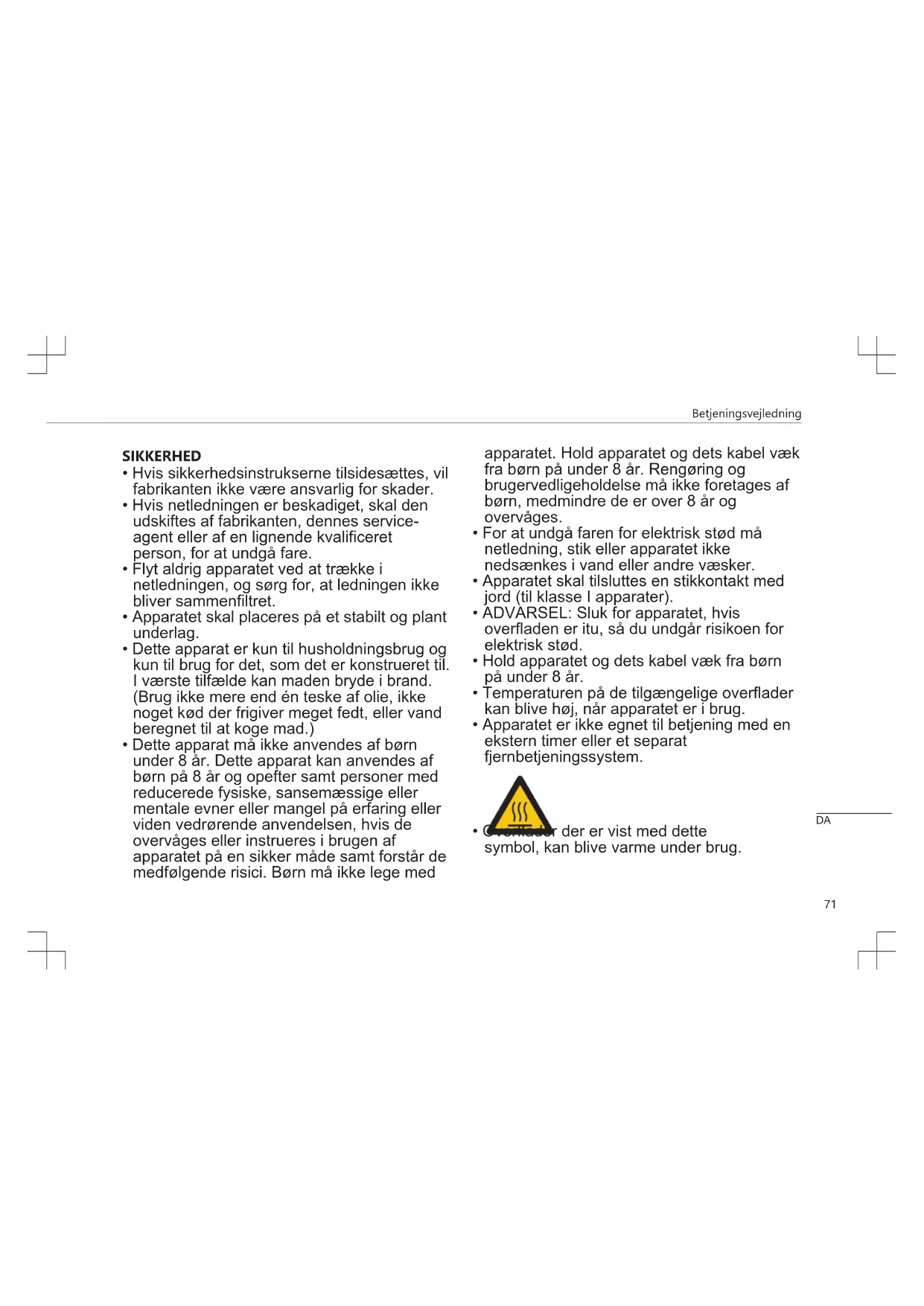 - Overflader der er vist med dette symbol, kan blive varme under brug. DABetjeningsvejledning