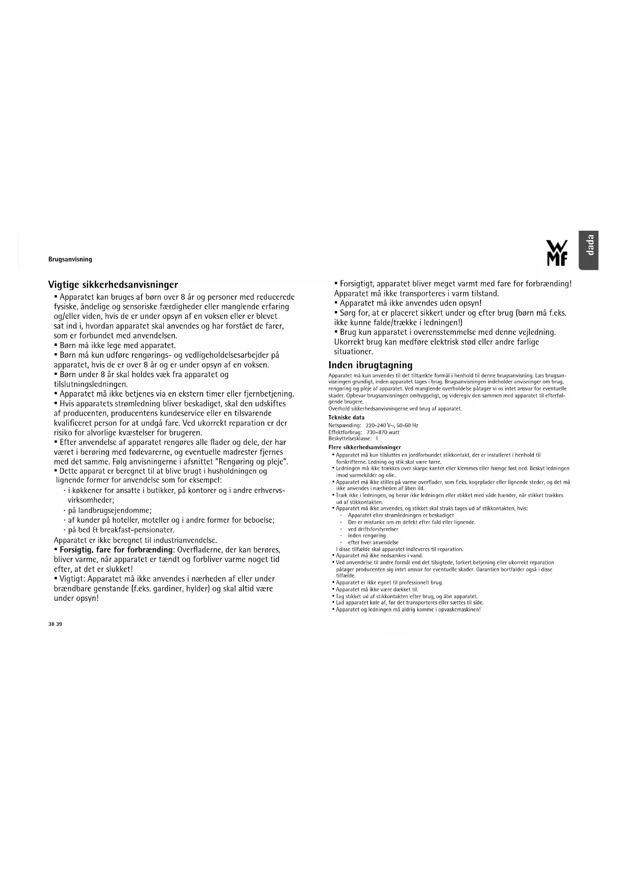 - Apparatet må kun anvendes med originalt tilbehør fra WMF.