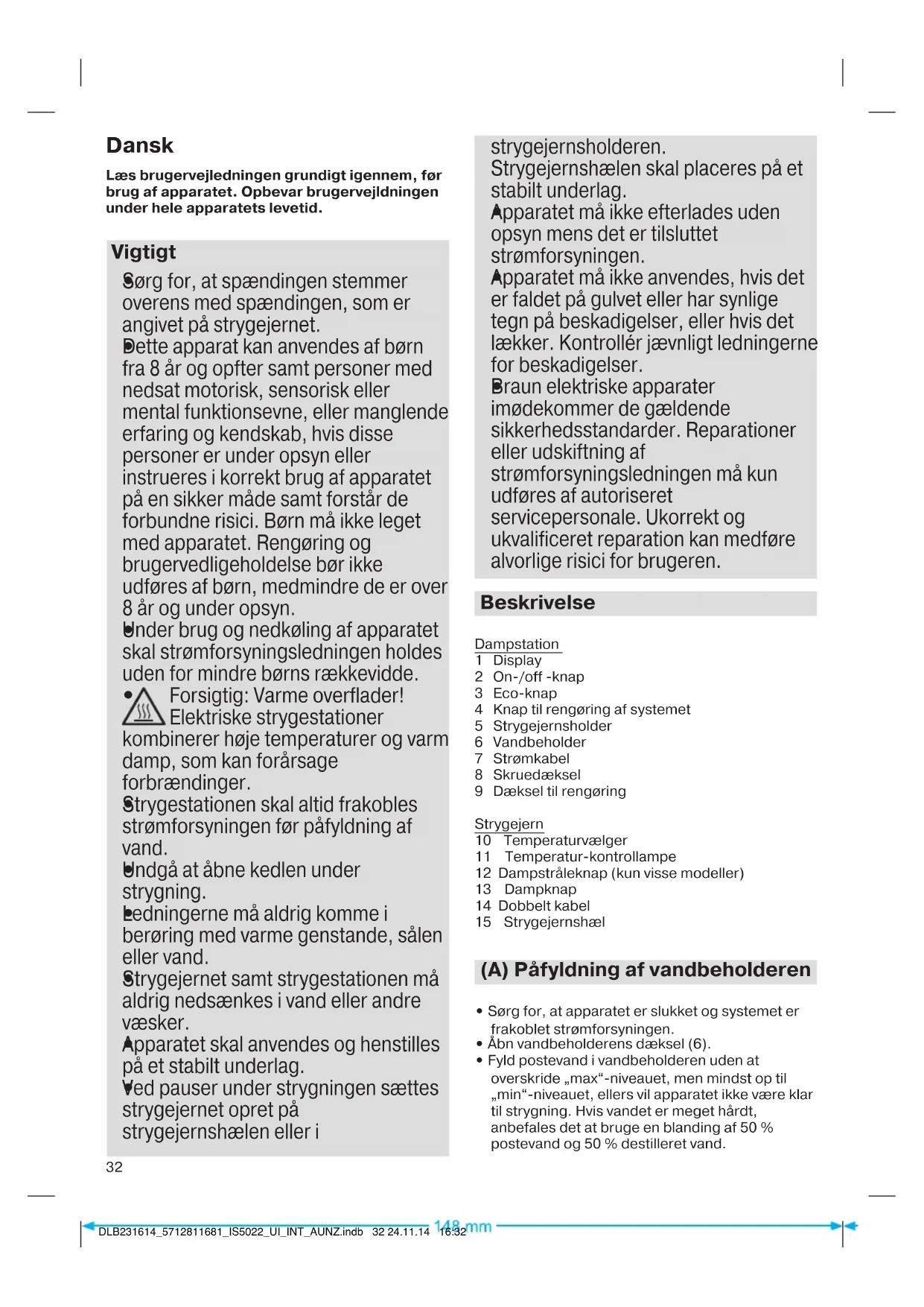 DLB231614_5712811681_IS5022_UI_INT_AUNZ.indb 31 24.11.14 16:32Dansk Læs brugervejledningen grundigt igennem, før brug af apparatet. Opbevar brugervejldningen under hele apparatets levetid. Vigtigt