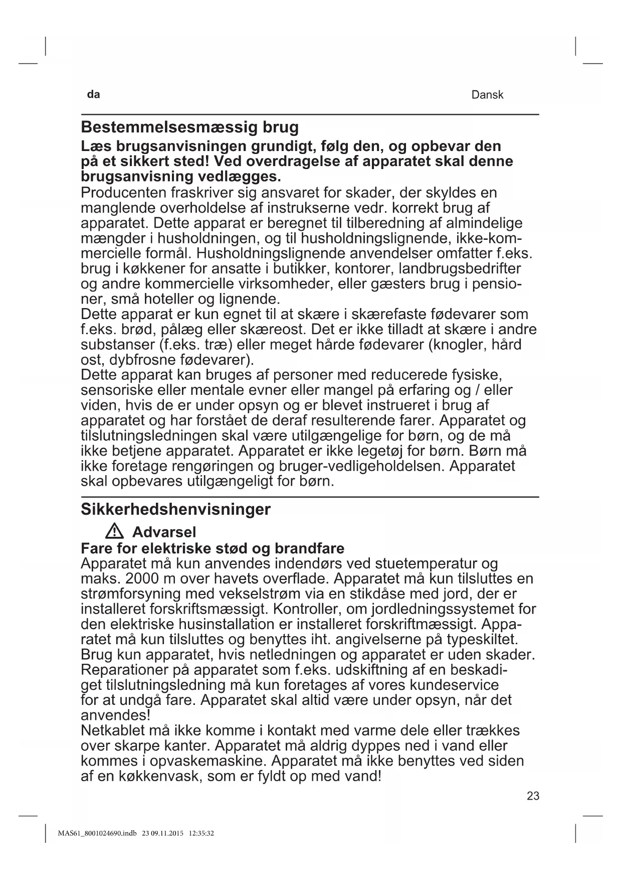 - Sikkerhedshenvisninger p. 23