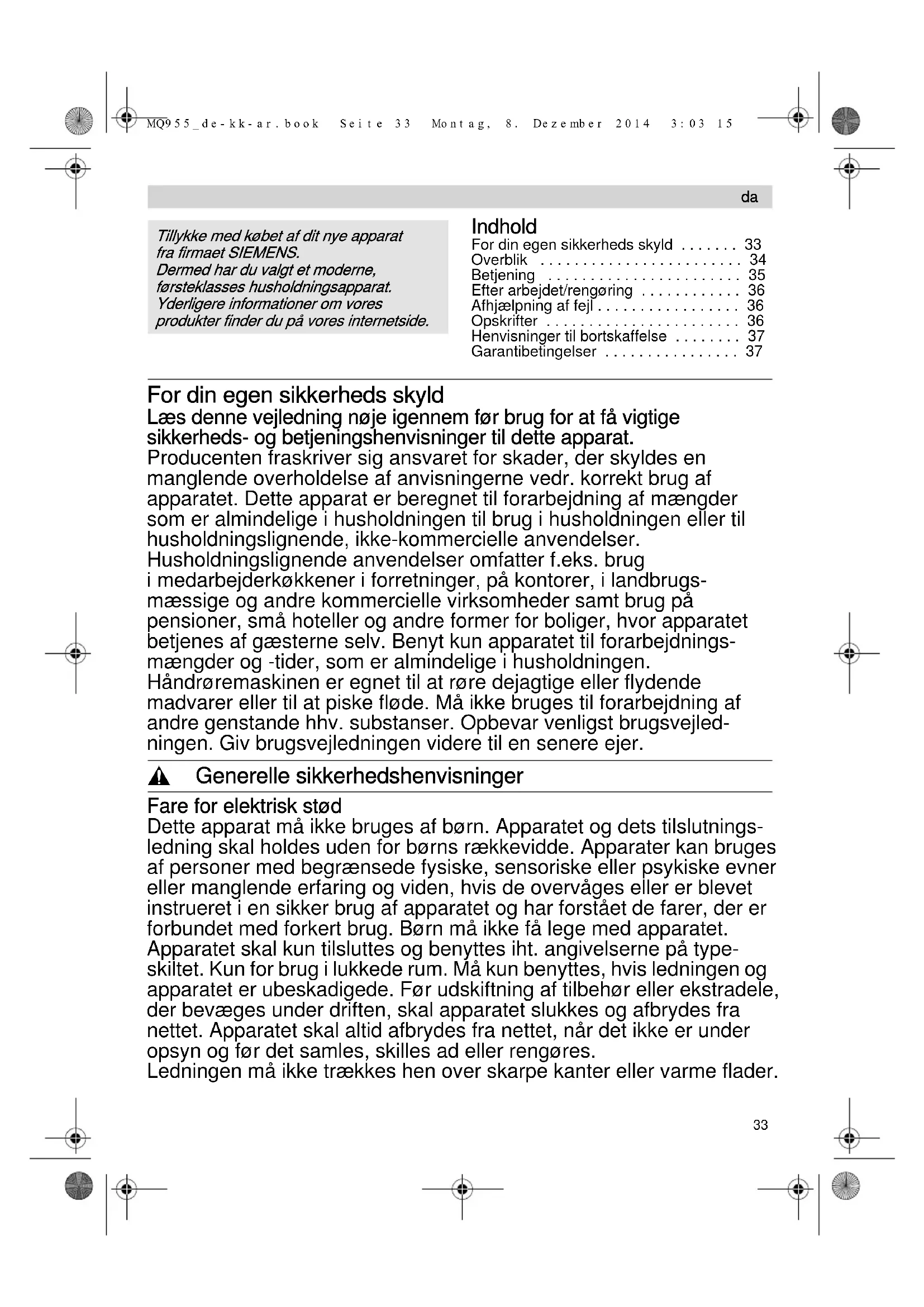 Find enhedens vejledning gratis MQ95530N SIEMENS i PDF-format.