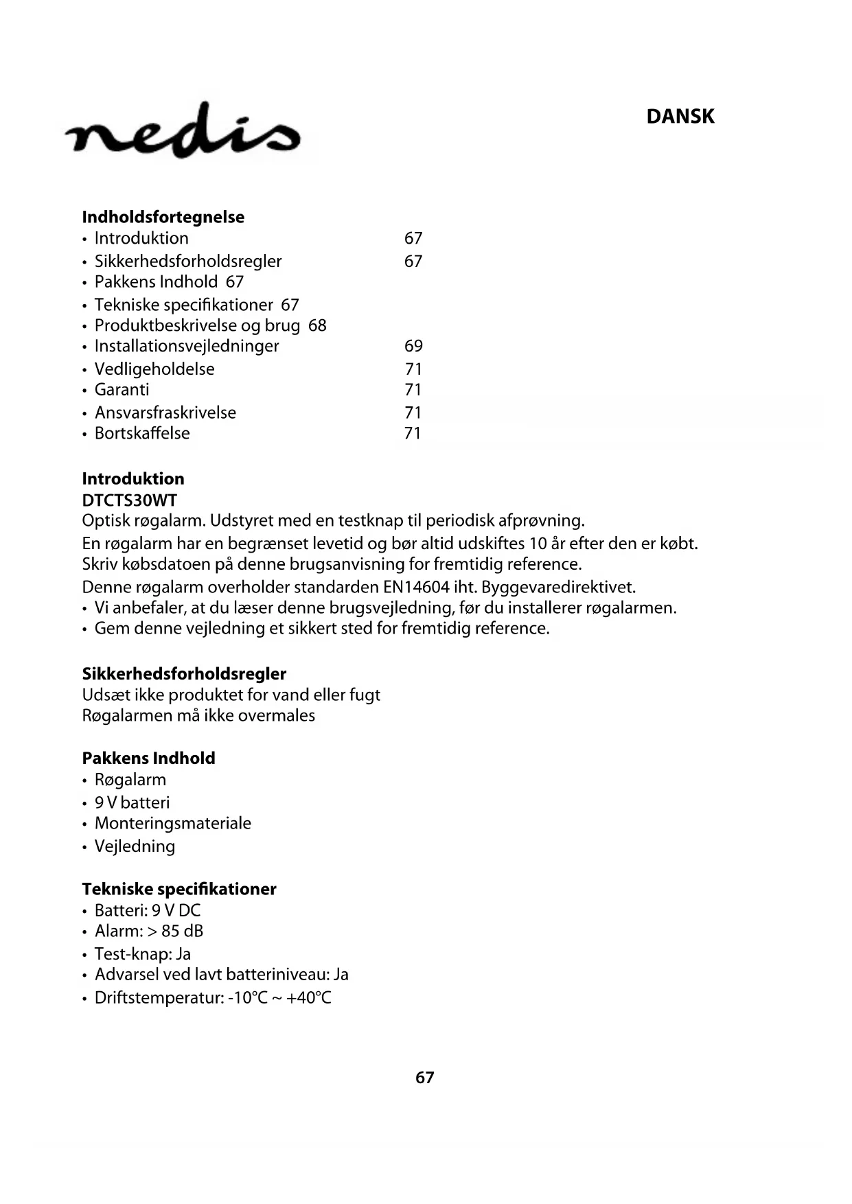 DTCTS30WT - Røgalarm NEDIS - Gratis brugsanvisning og manual