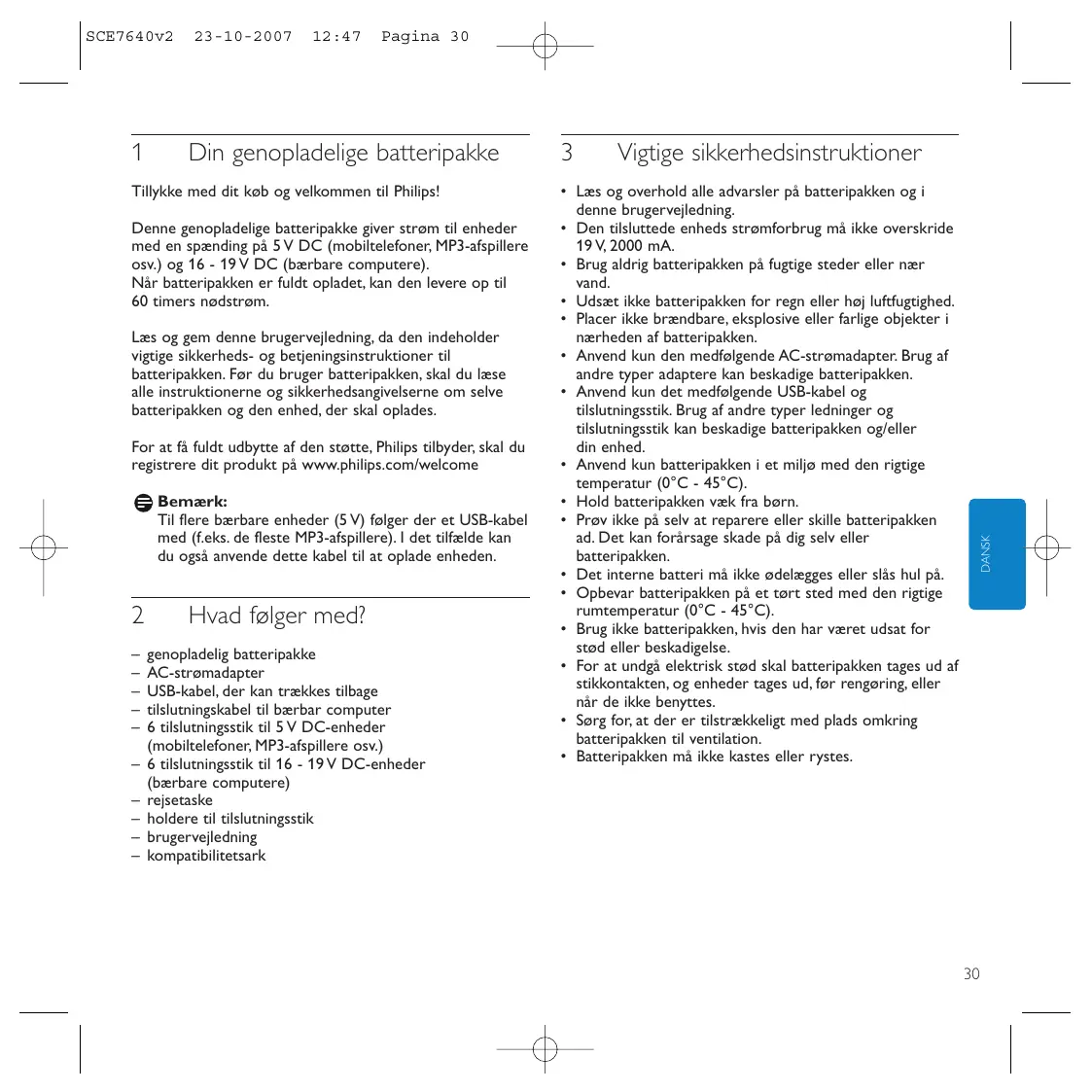 Lisez attentivement ce manuel d’utilisation et conservez-le précieusement, car il contient des informations relatives à la sécurité et à l’utilisation de ce bloc d’alimentation. Avant toute utilisation, lisez toutes les instructions et consignes de sécurité apposées sur le bloc d’alimentation et les appareils à charger. Pour profiter pleinement de l’assistance Philips, enregistrez votre produit sur le site: www.philips.com/welcome. Remarque: Un cáble USB est fourni avec certains appareils portables (5 V), avec la plupart des lecteurs MP3 par exemple.Vous pouvez dans ce cas également utiliser ce cáble pour charger votre appareil.