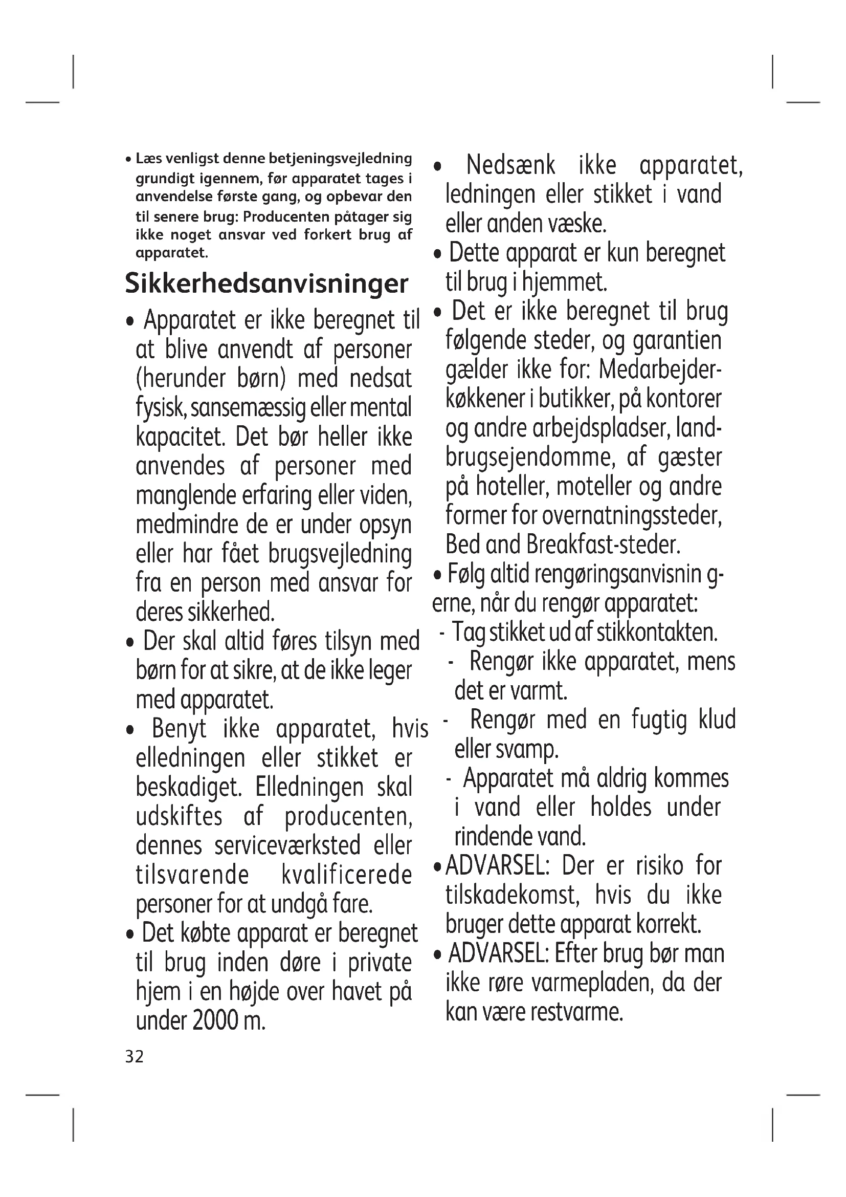 - ADVARSEL: Efter brug bør man ikke røre varmepladen, da der kan være restvarme.33