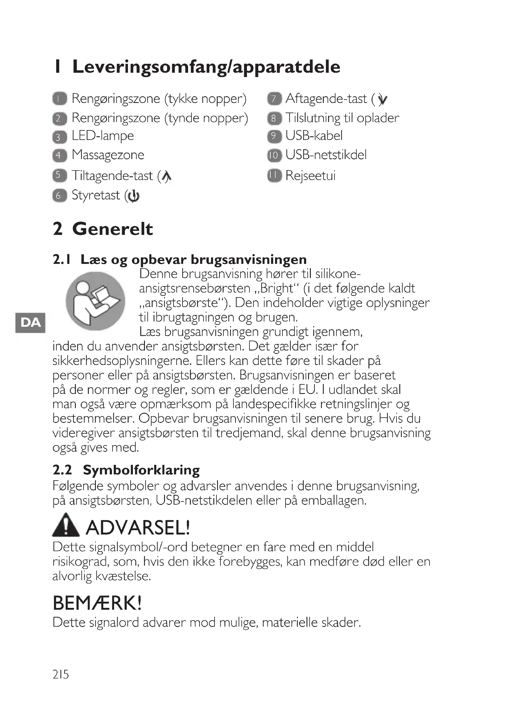 4 Kontroller ansigtsbørsten og leveringsomfanget 222