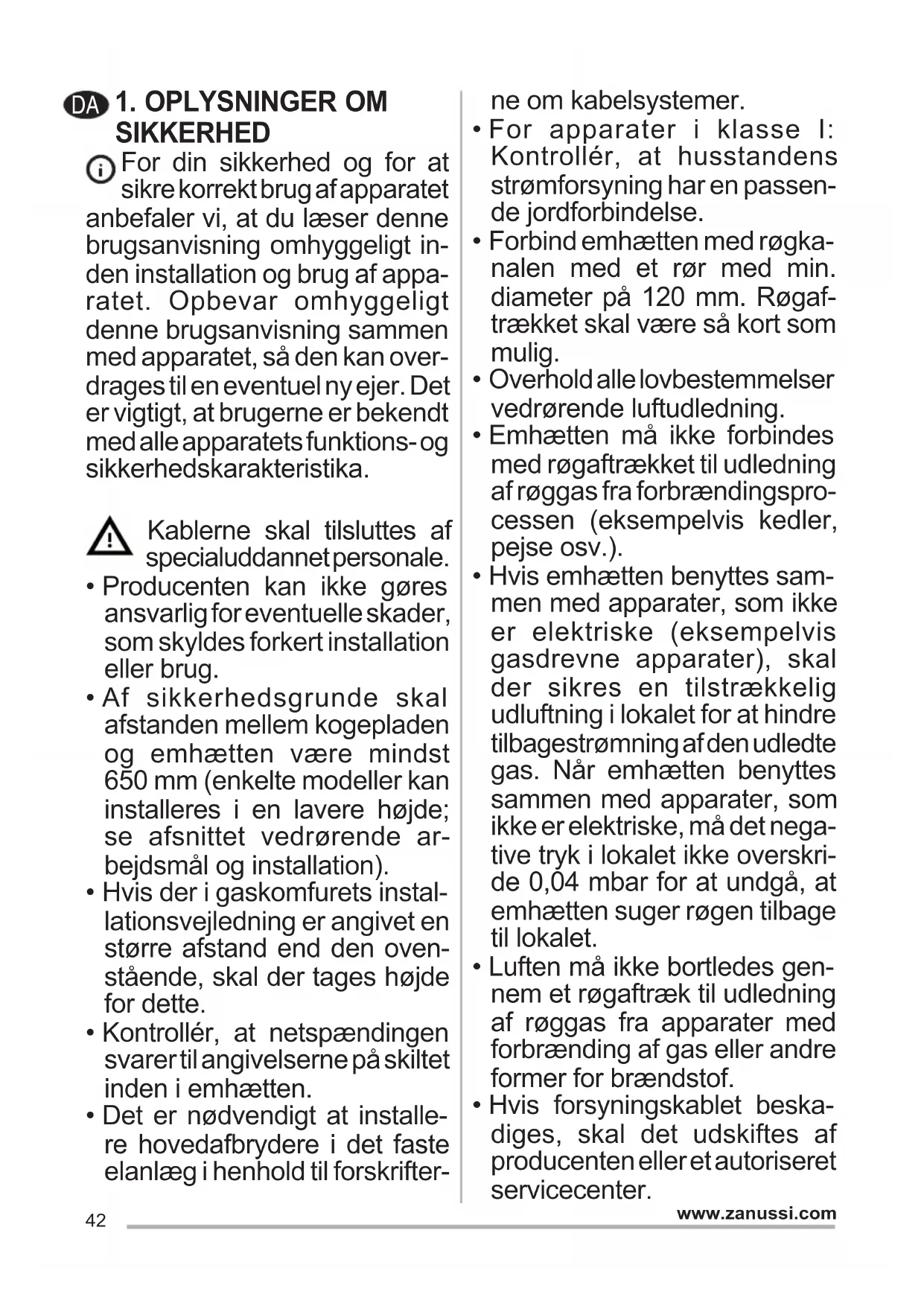 - Hvis forsyningskablet beska- diges, skal det udskiftes af producenten eller et autoriseret servicecenter. DA43 www.zanussi.com