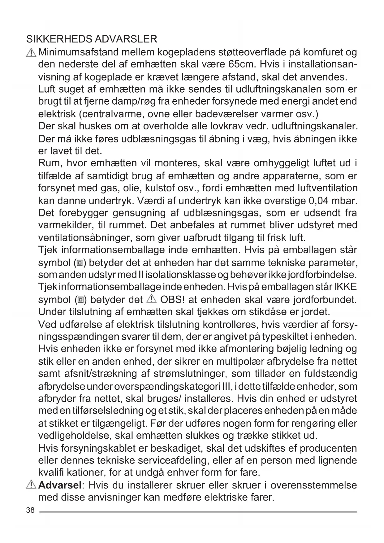 Emhætte Brugsvejledning 38