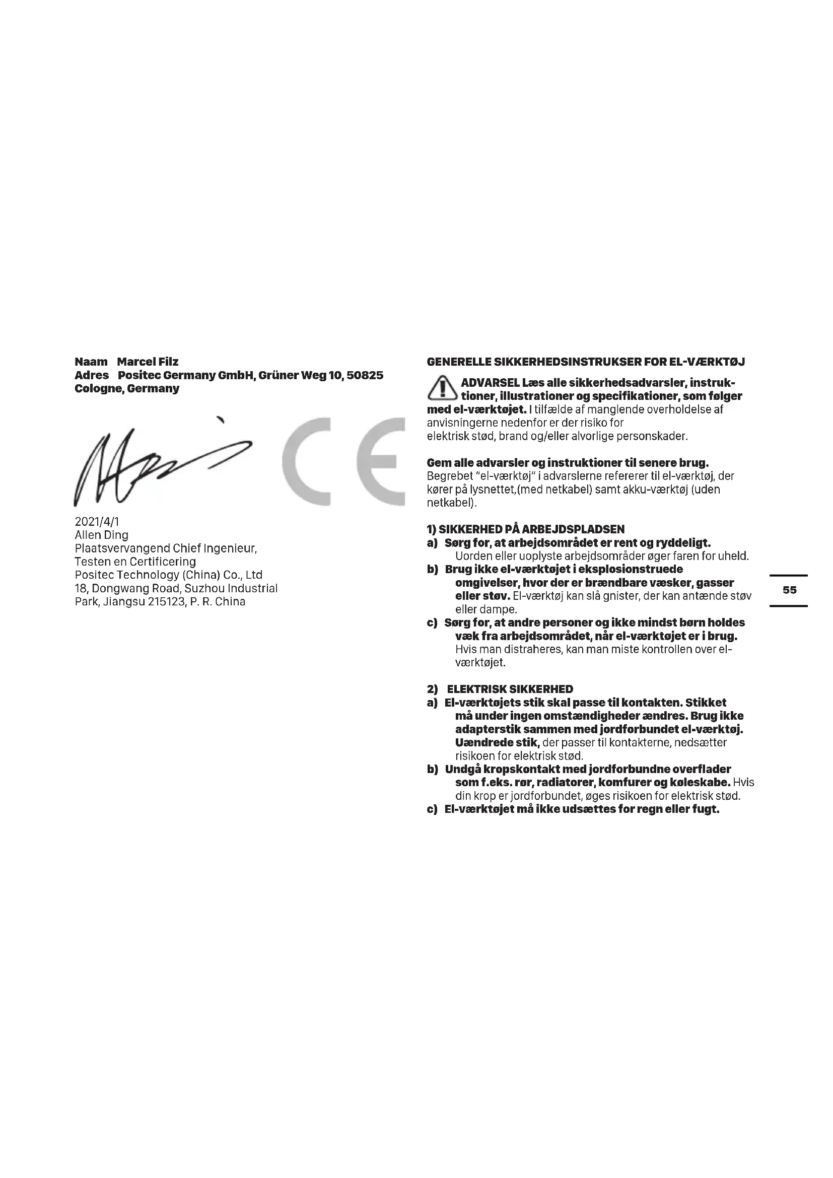Address Positec Germany GmbH Gruner Weg 10, 50825 Cologne, Germany