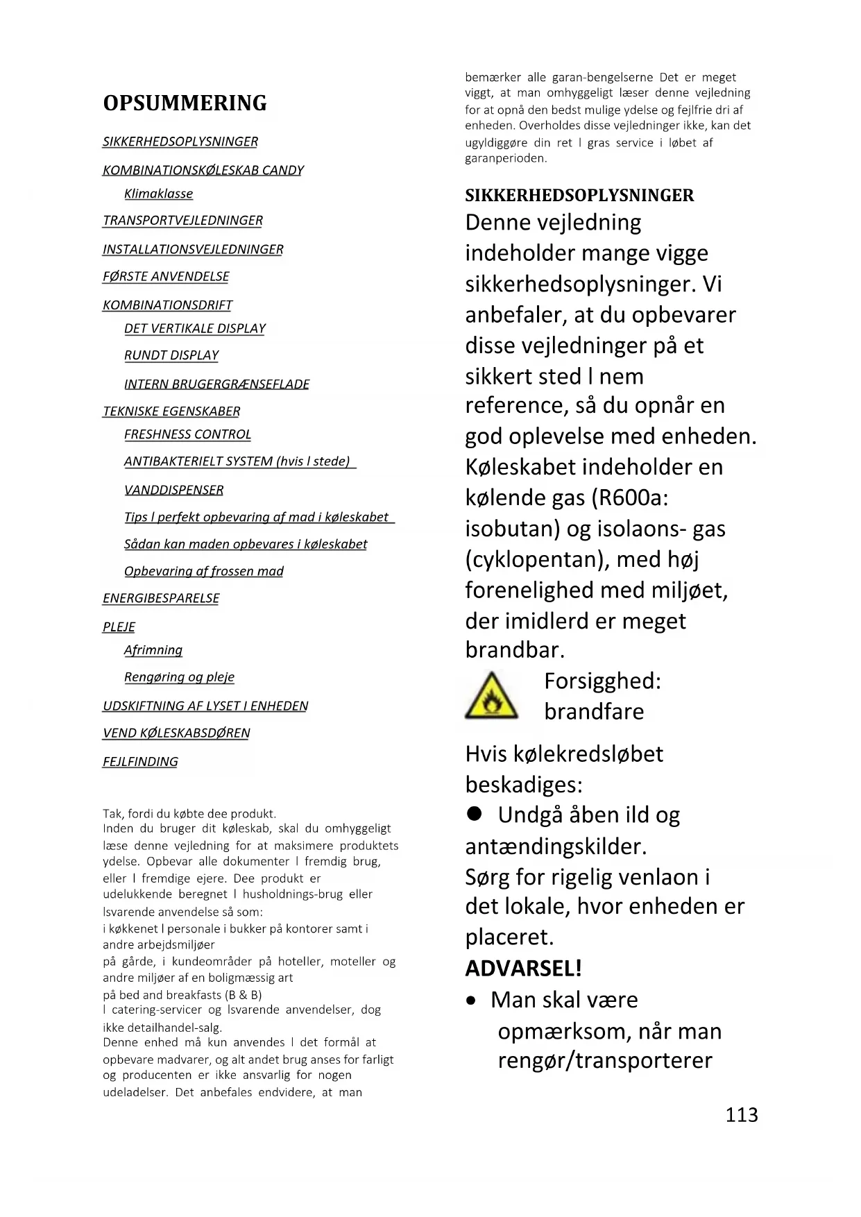 Denne enhed mä kun anvendes I det formal at opbevaré madvarer, og alt andet brug anses for farligt og producenten er/DDke ansvarlig for nogen udeladelser.Det anbefales endvidere, at man