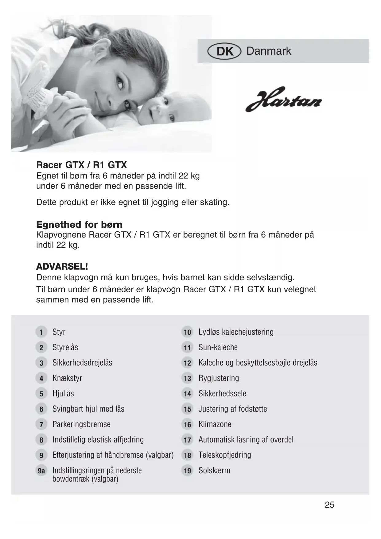Download vejledningen til din Klapvogn i PDF-format gratis! Find din vejledning Racer GTX - HARTAN og tag din elektroniske enhed tilbage i hånden. På denne side er alle dokumenter nødvendige for brugen af din enhed offentliggjort. Racer GTX af mærket HARTAN.
