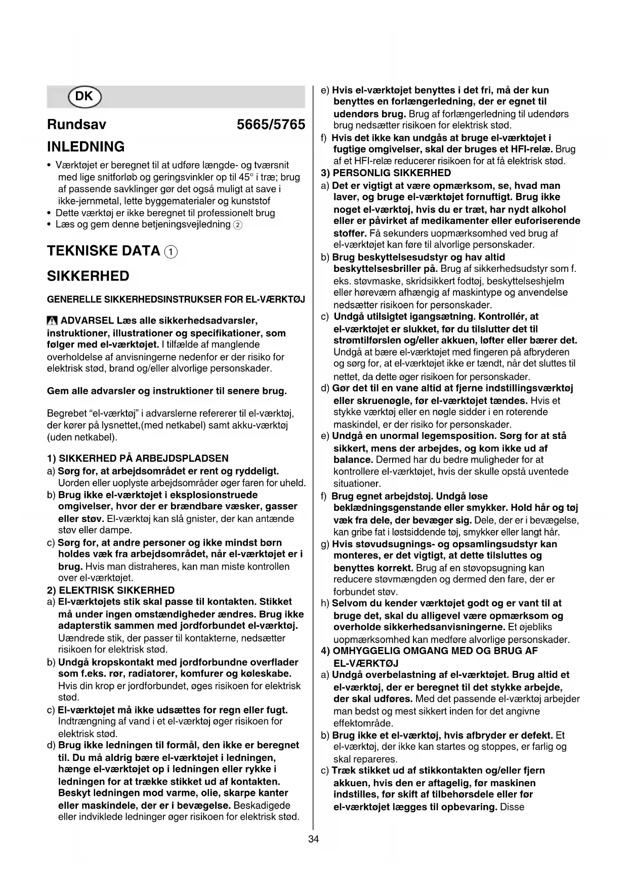 GENERELLE SIKKERHEDSINSTRUKSER FOR EL-VÆRKTØJ