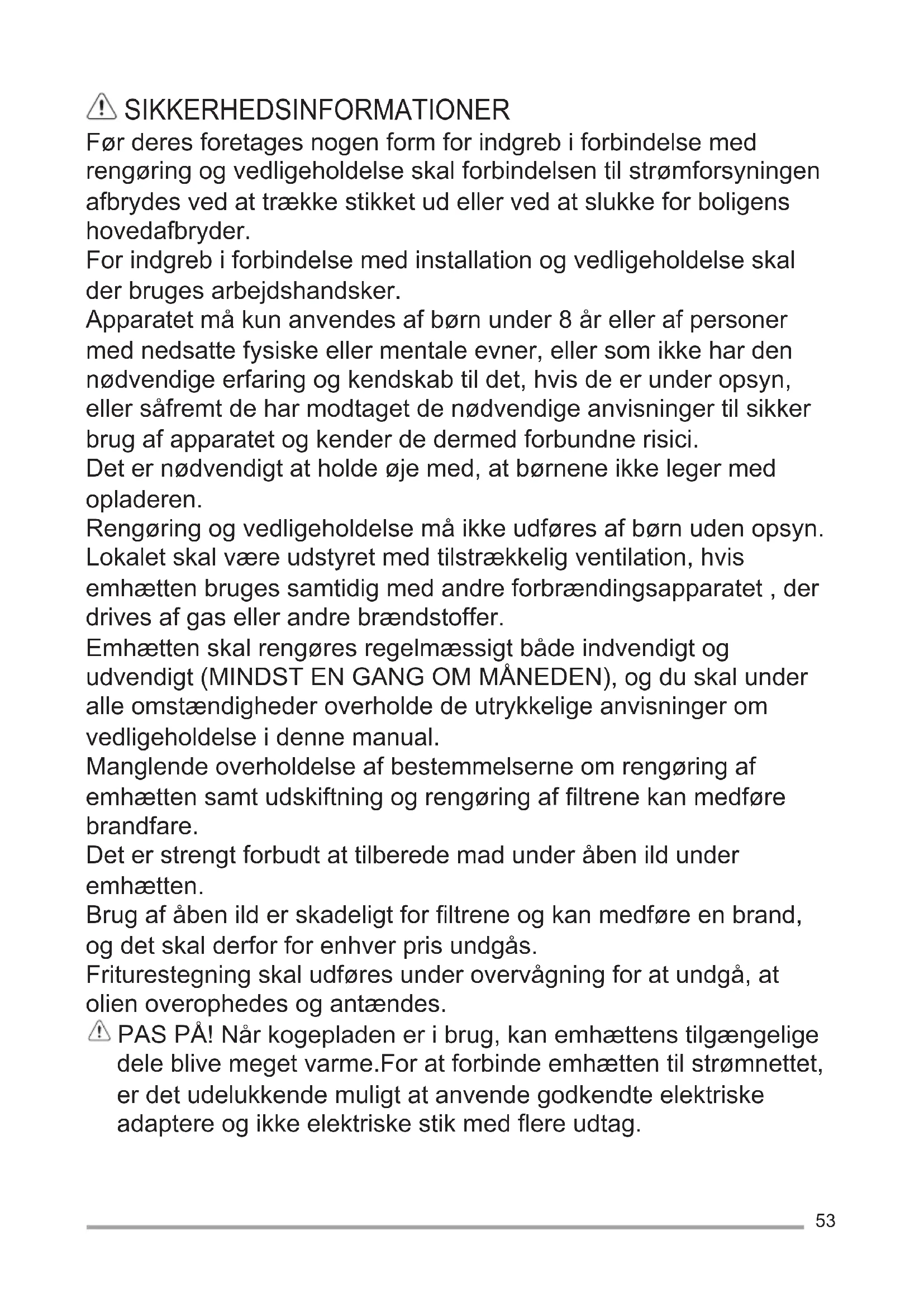 Emhætte Brugsvejledning 53
