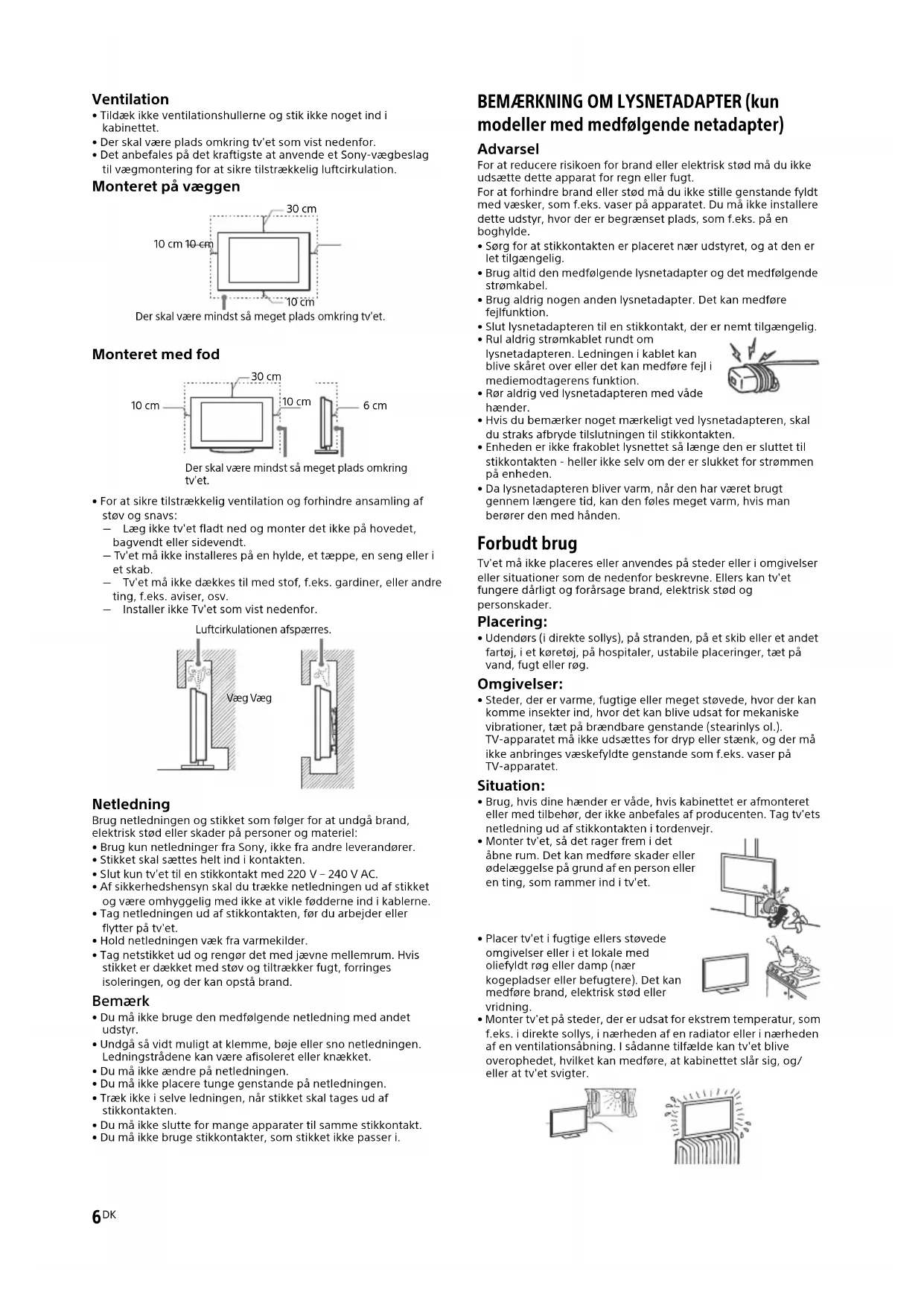 Tv'et skal saettes op ved en let tilgaardelig stikkontakt.