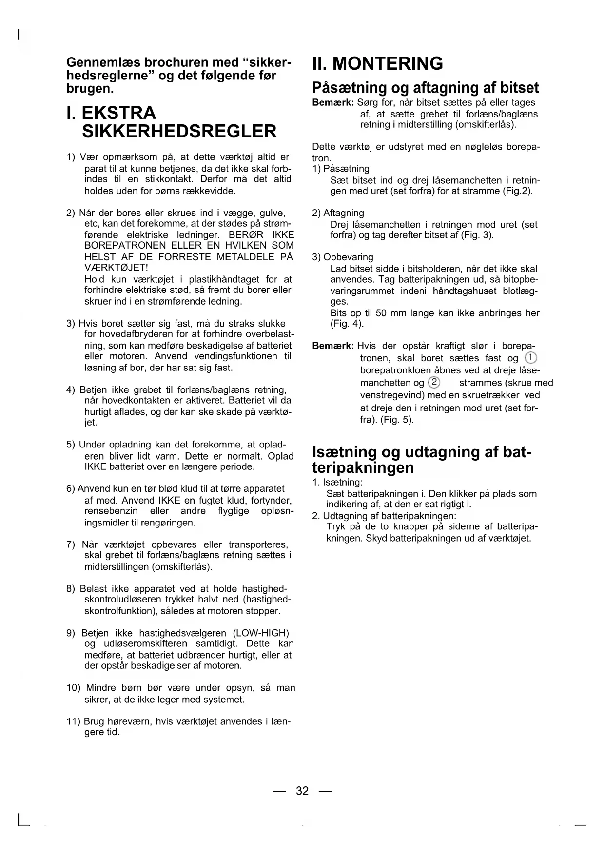 Bemärk: Sørg for, nár bitset saettes på erler tages af, at saette grebet til forlaens/baglaens retning i misterstilling (omskifterlås).