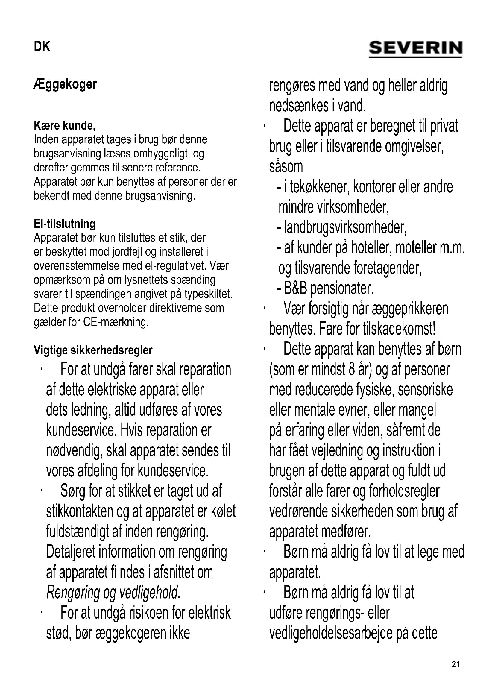 Find enhedens vejledning gratis EK 3053 SEVERIN i PDF-format.