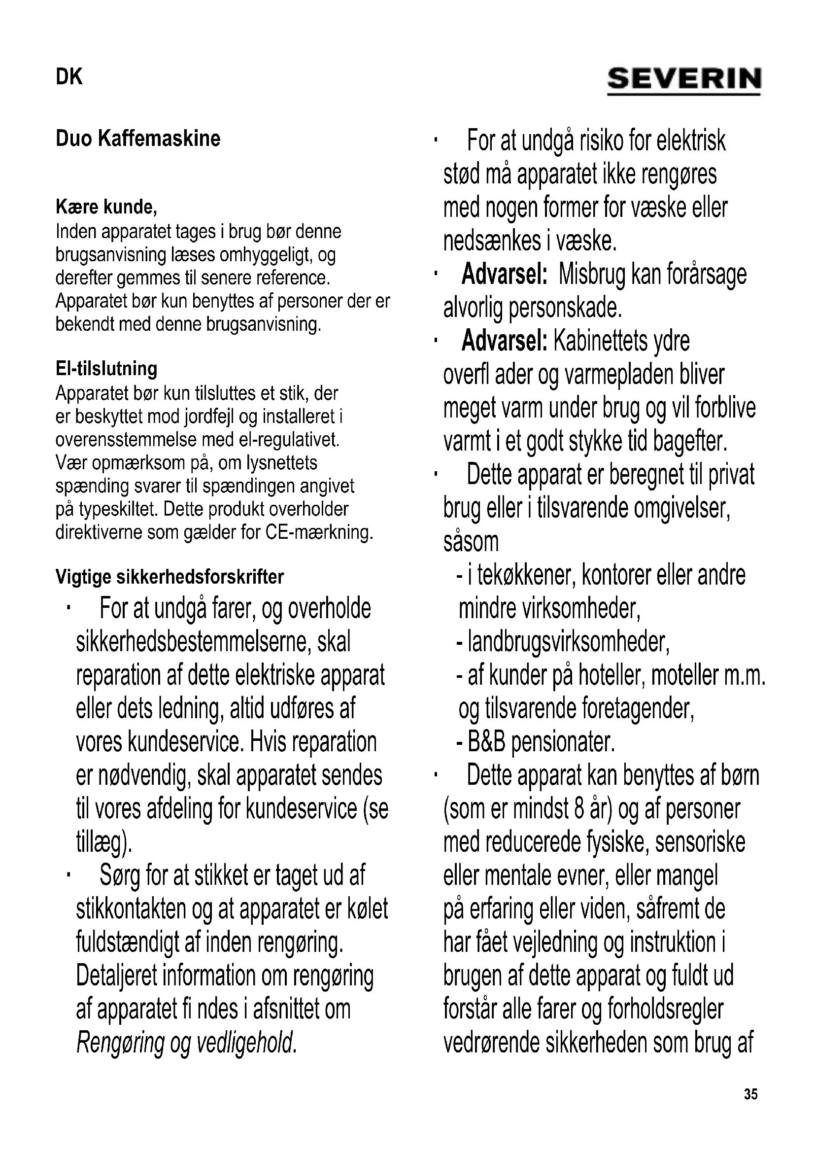 Find enhedens vejledning gratis KA 5800 SEVERIN i PDF-format.
