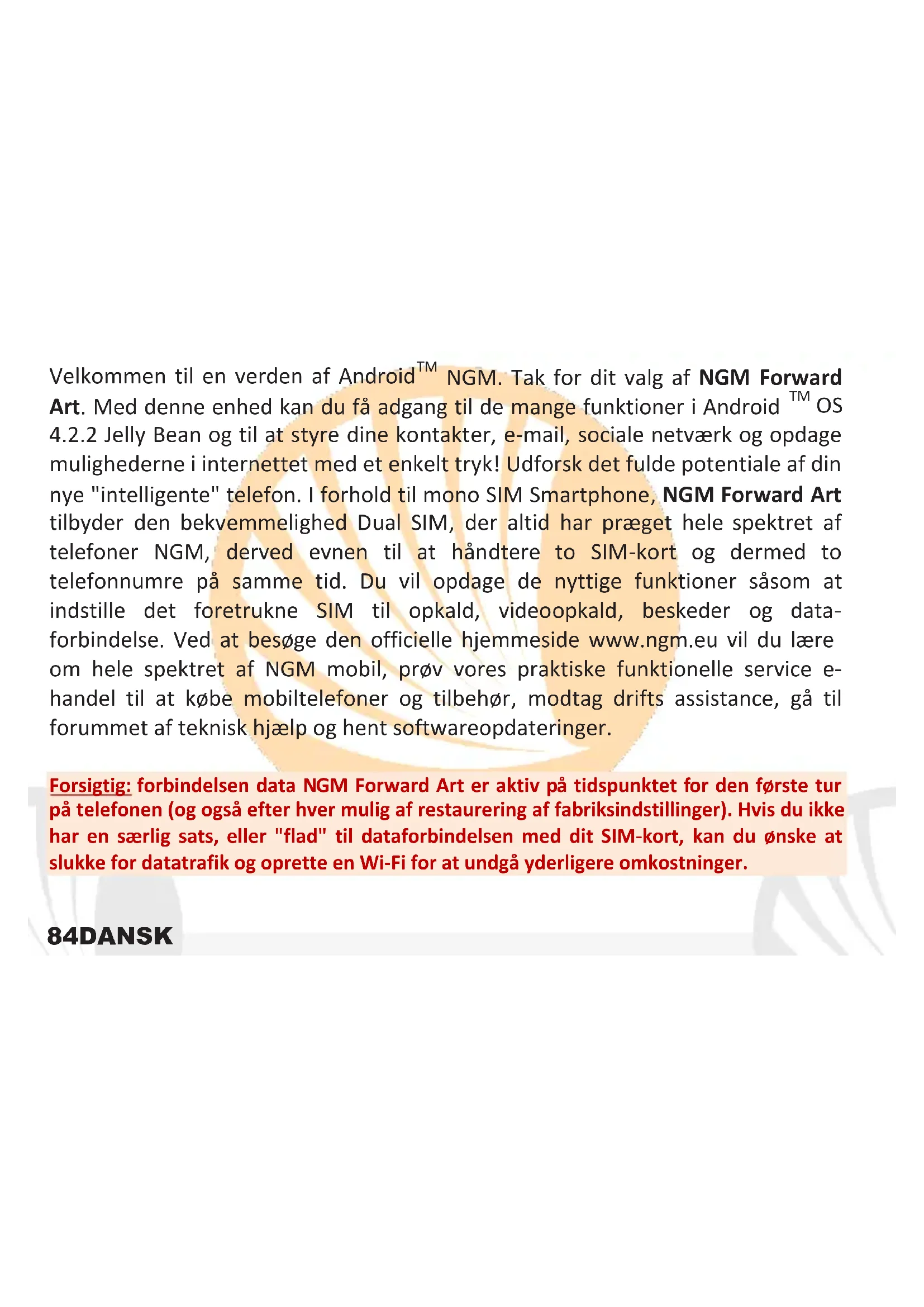 NGM. Tak for dit valg af NGM Forward Art. Med denne enhed kan du få adgang til de mange funktioner i Android