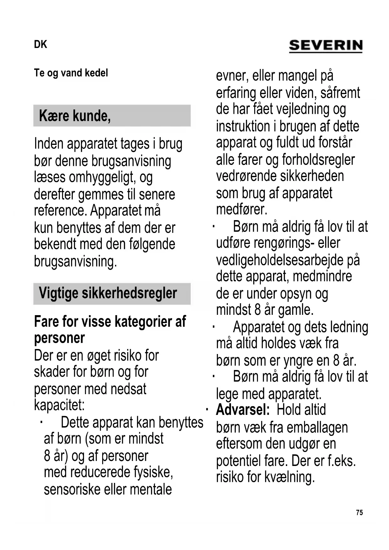 - Dette apparat må kun anvendes til opvarmning af rent, friskt vand og til at lave varme drikke.