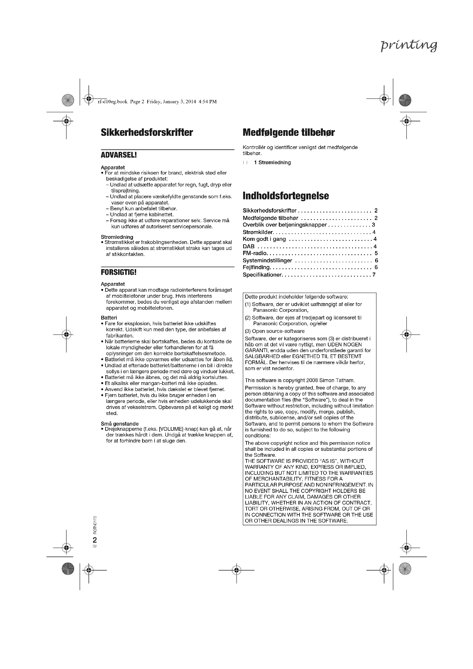 RFD10EB - Radio PANASONIC - Gratis brugsanvisning og manual