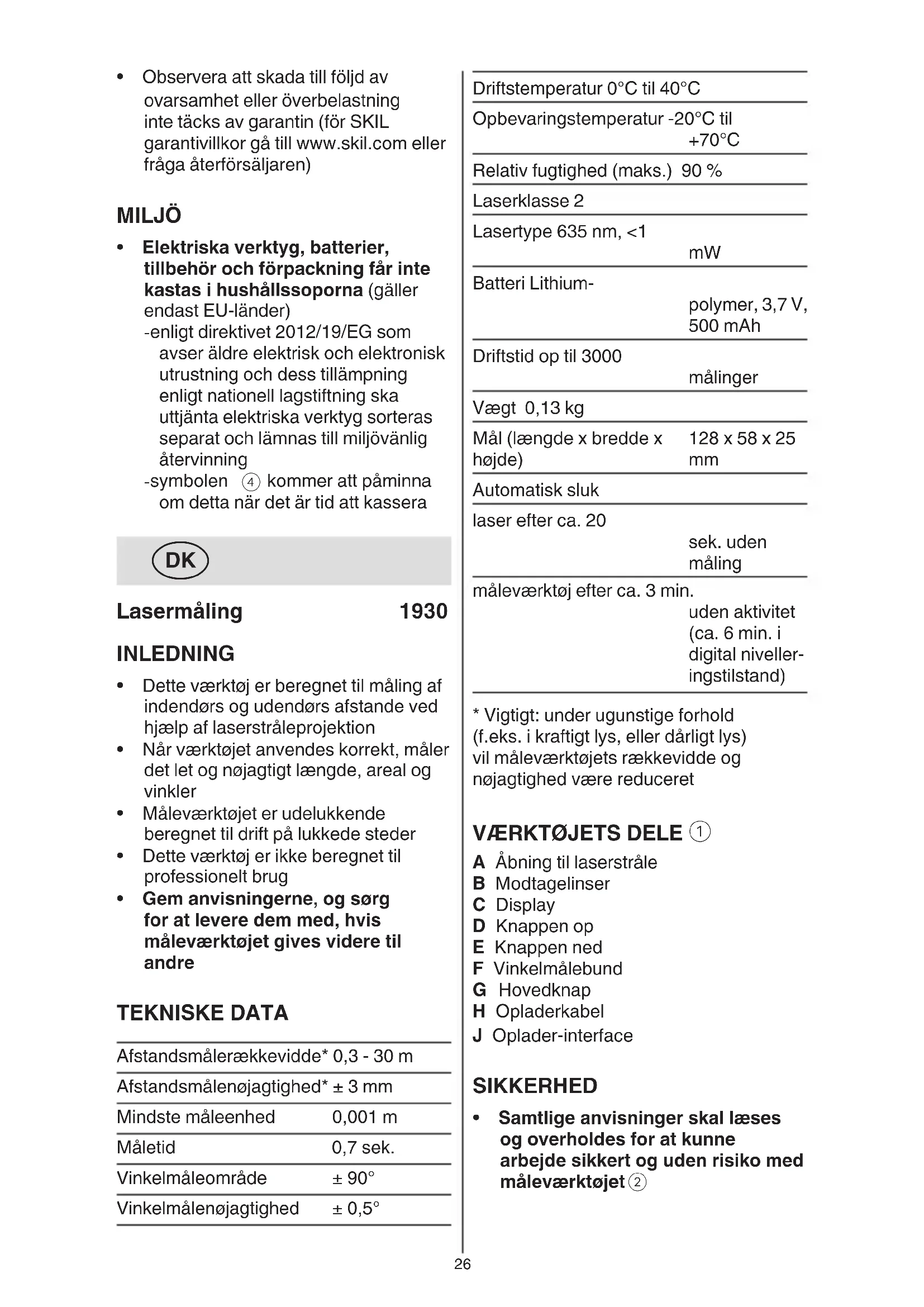 - Husk, at beskadigelse som følge af overbelastning eller forkert håndtering af værktøjet ikke er omfattet af garantien (se www.skil.com vedrørende SKIL- garantibetingelserne, eller spørg din forhandler) MILJØ