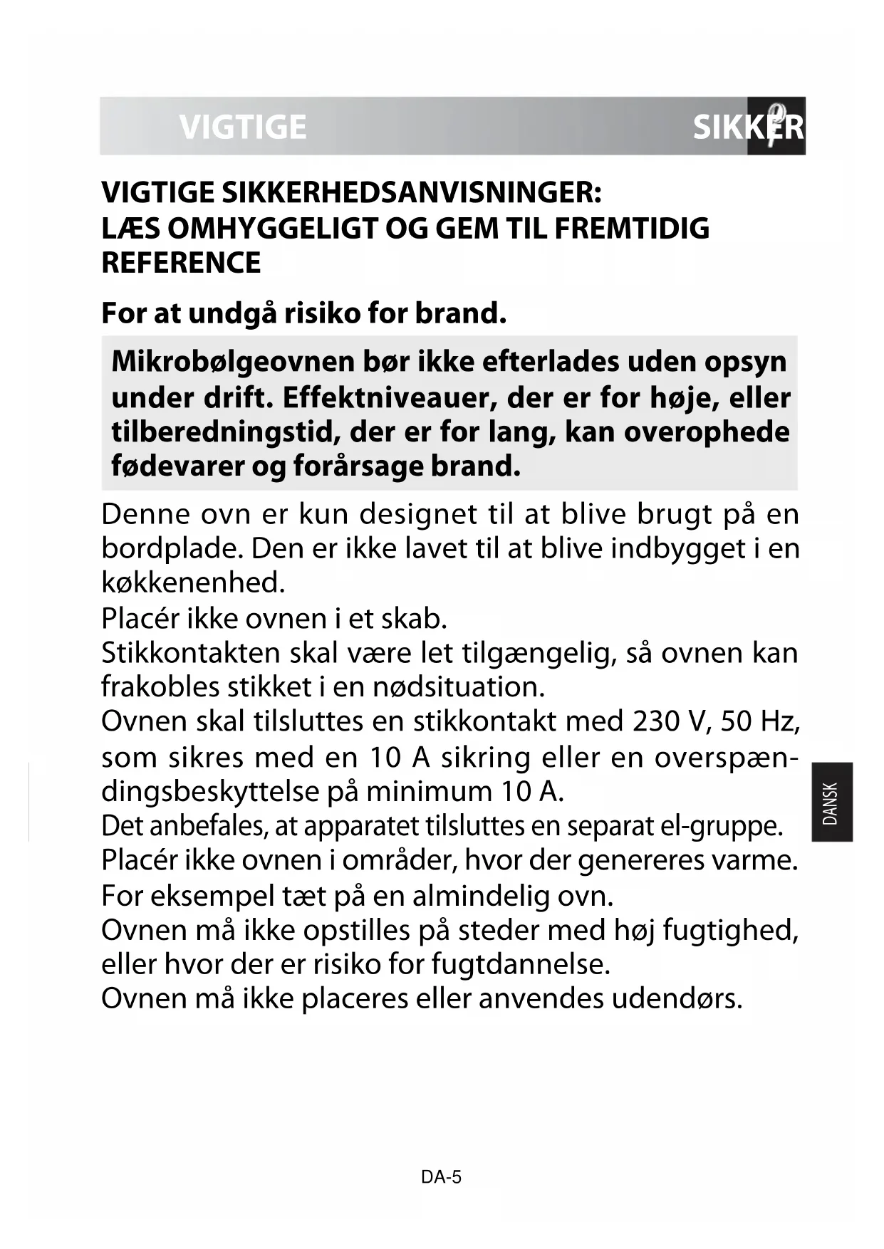 DA-5VIGTIGE SIKKERHEDSANVISNINGER