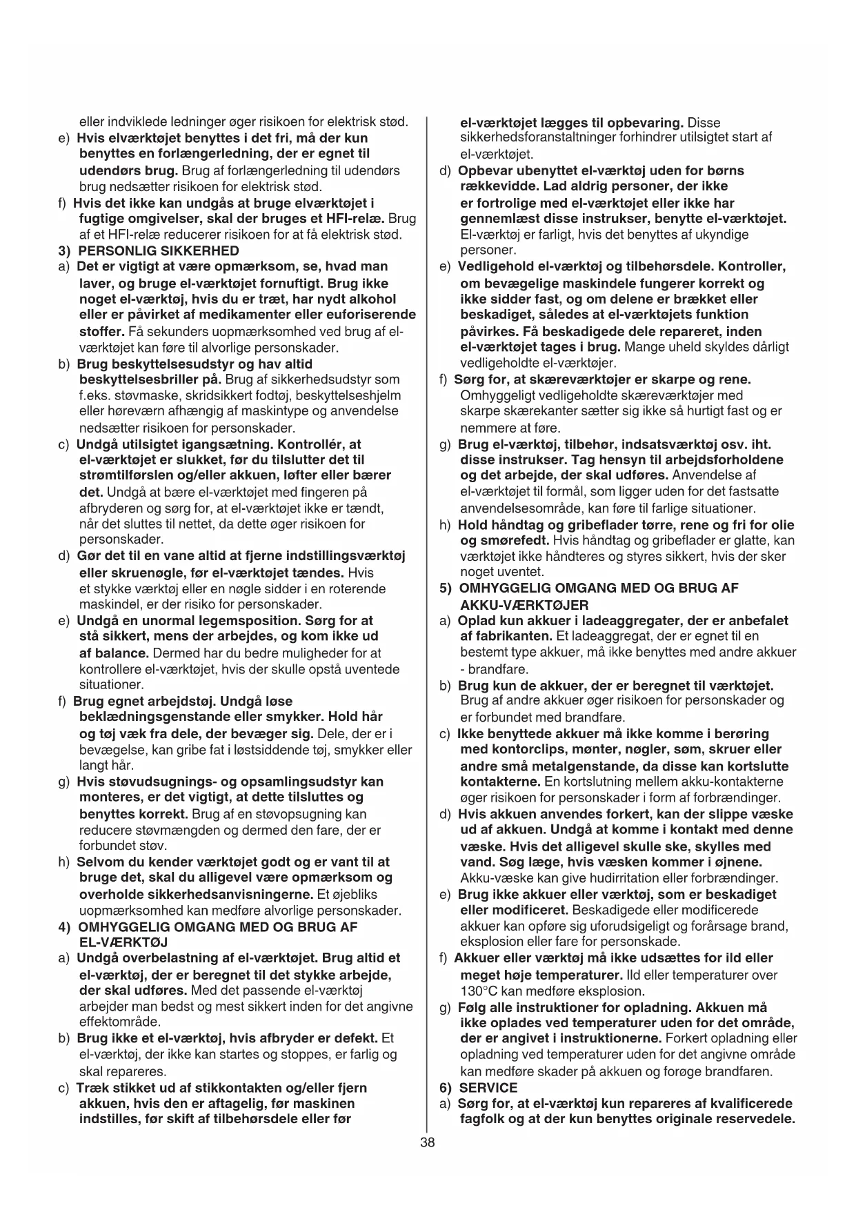 f) Hvis det jeg kan undgås at bruge elværktoget i fugtige omgivelser, skal der bruges et HFI-relæ. Brug af et HFI-relæ reducerer risikoen for at fæ elektrisk stød.