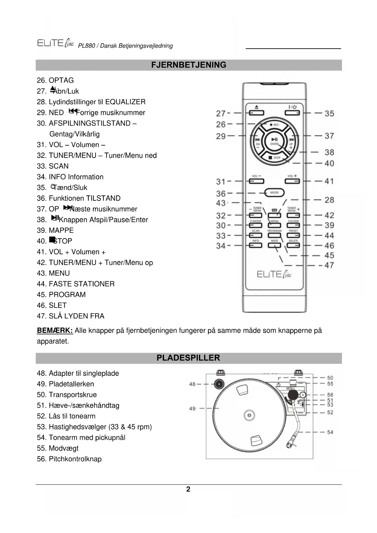 BEMÆRK: Alle knapper på fjernbetjeningen fungerer på samme måde som knapperne på apparatet. PLADESPILLER