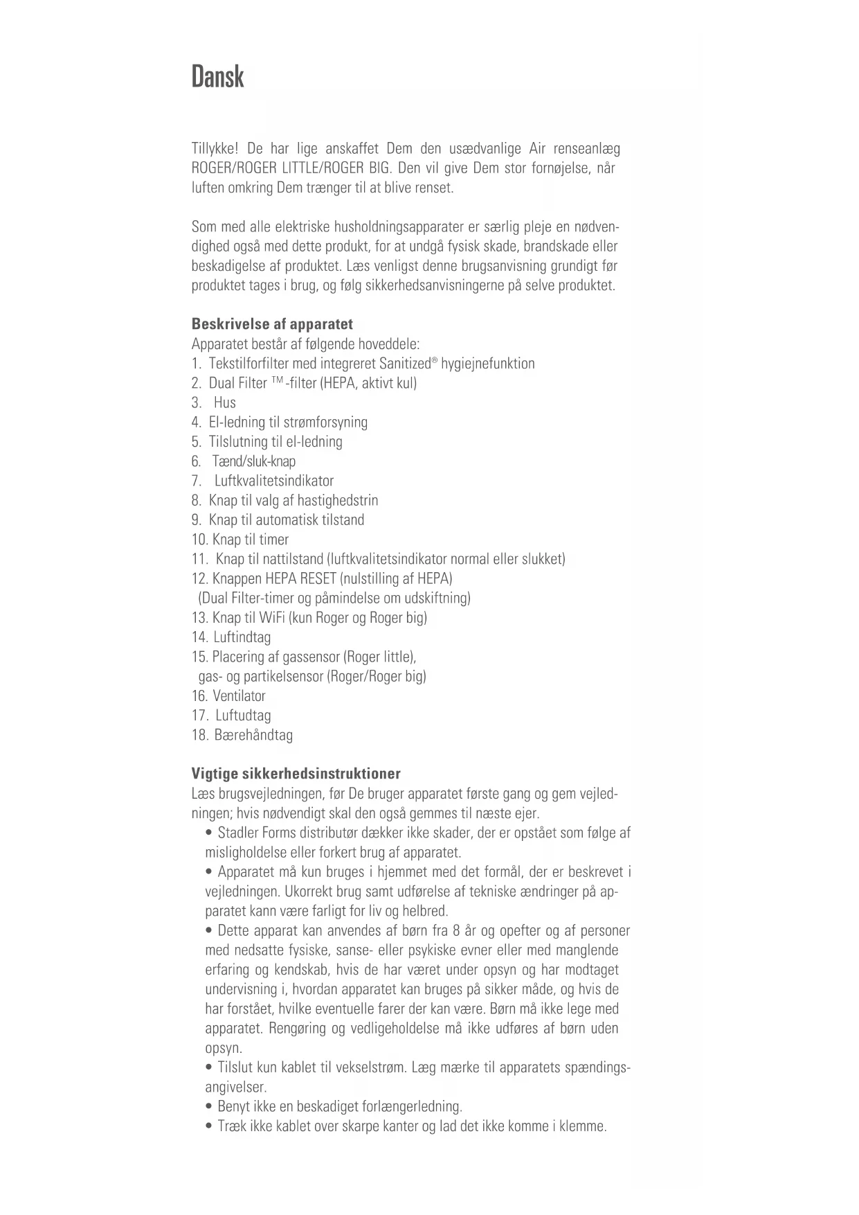 Roger Little - Luftrenser STADLER FORM - Gratis brugsanvisning og manual