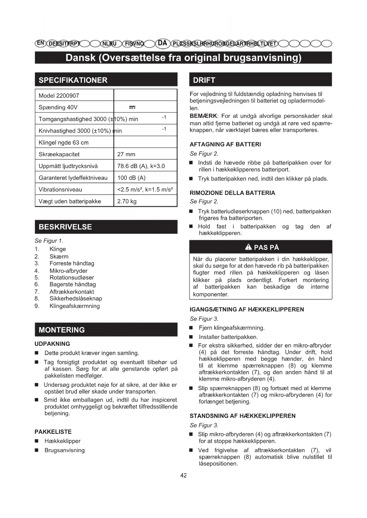 40V Ledningsfri hækkeklipper BRUGERVEJLEDNING 42