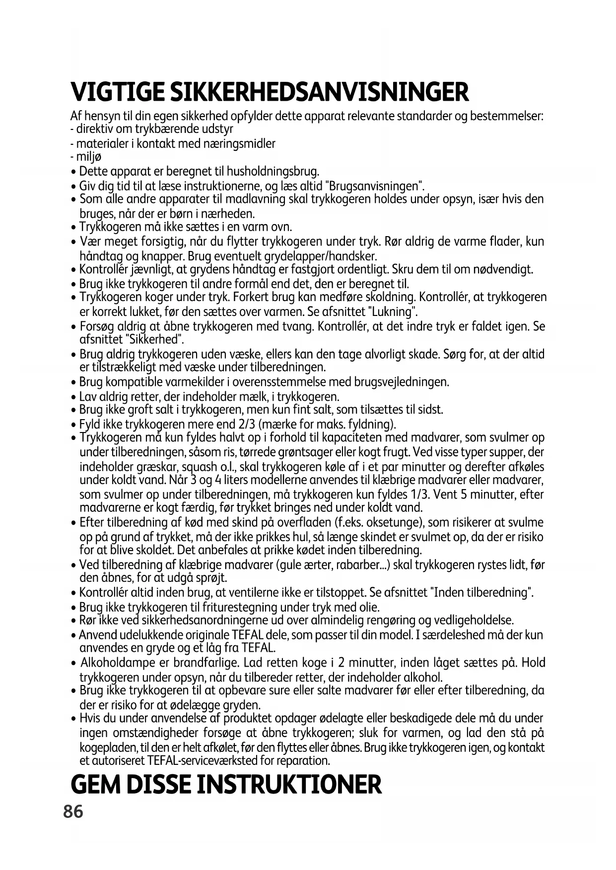 - Som alle andre apparater til madlavning skal trykkogeren holdes under opsyn, især hvis den bruges, når der er børn i nærheden.