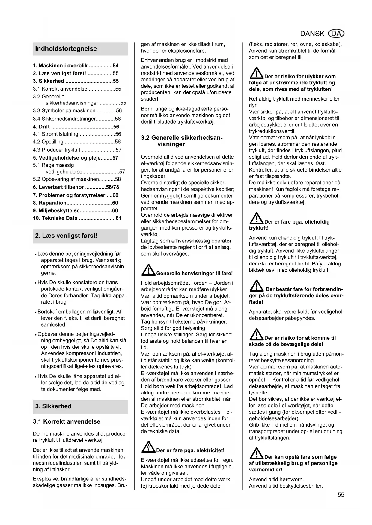 3.2 Generelle sikkerhedsanvisninger 55