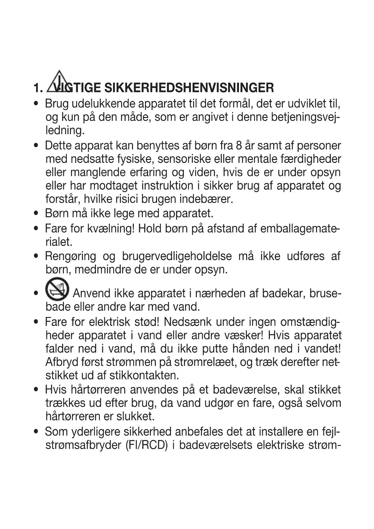 - Dette apparat kan benyttes af børn fra 8 år samt af personer med nedsatte fysiske, sensoriske eller mentale færdigheder eller manglende erfaring og viden, hvis de er under opsyn eller har modtaget instruktion i sikker brug af apparatet og forstår, hvilke risici brugen indebærer.