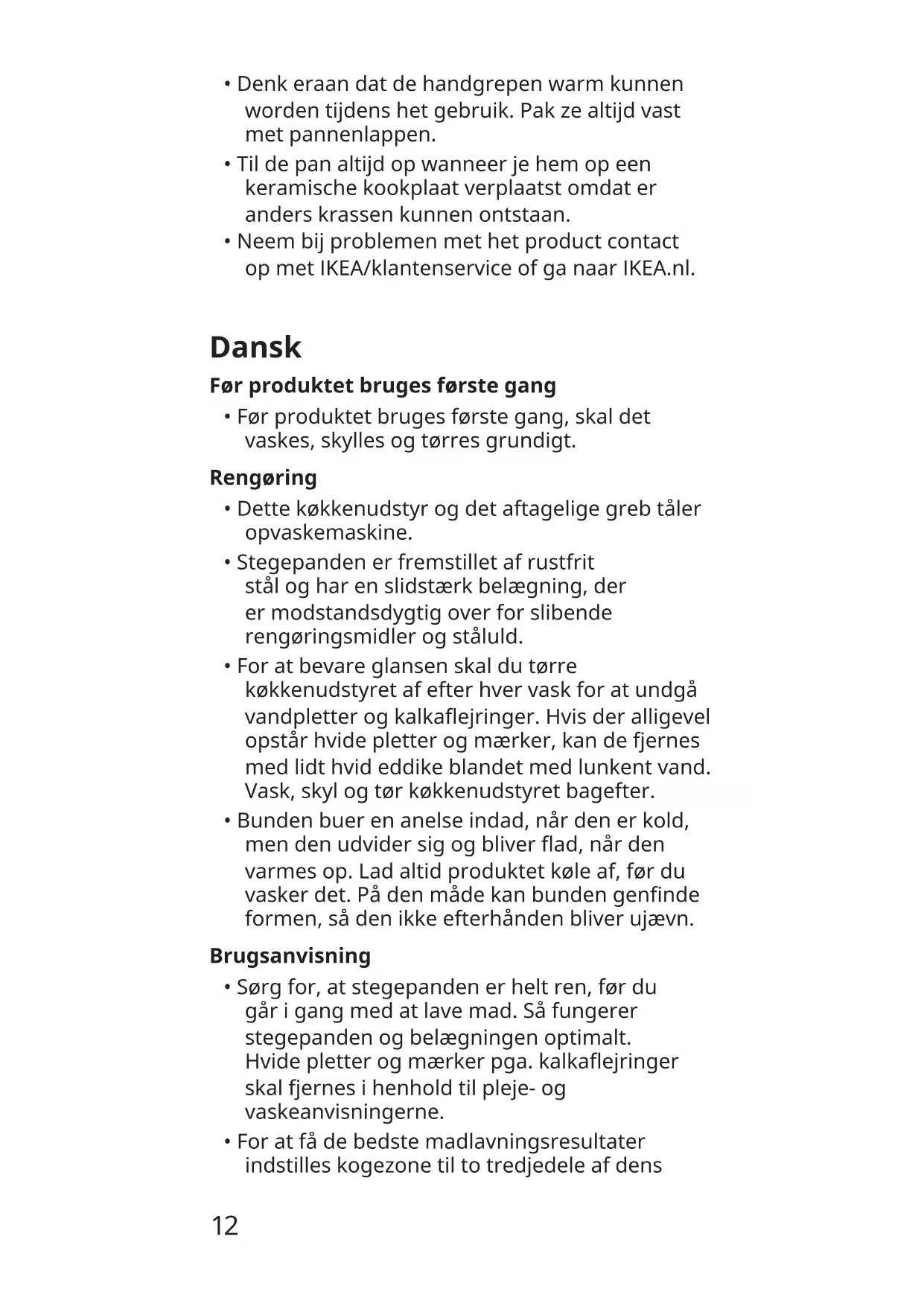 - Bunden buer en anelse indad, når den er kold, men den udvider sig og bliver ad, når den varmes op. Lad altid produktet køle af, før du vasker det. På den måde kan bunden gennde formen, så den ikke efterhånden bliver ujævn. Brugsanvisning
