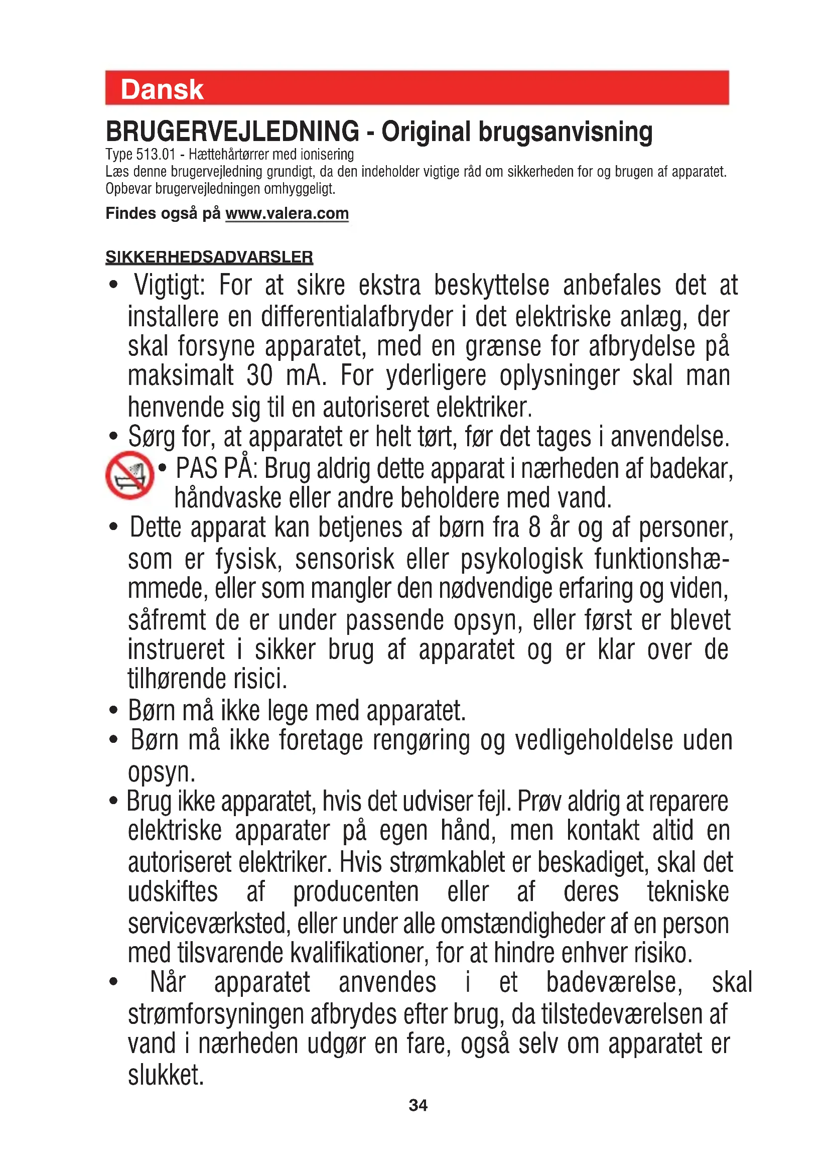 BRUGSANVISNING Swiss Ionic Comfort 513.01 VALERA